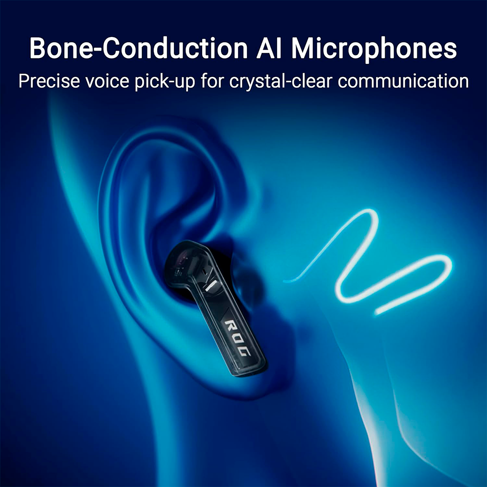 Audífonos con Micrófono ASUS ROG TRUE WIRELESS SPEEDNOVA, 2,4 GHz y Bluetooth 5.3, Audio de 24 bits de 96 kHz, Micrófonos de IA de Conducción Ósea, ANC Adaptable, Black, SPEEDNOVA/BK/NA