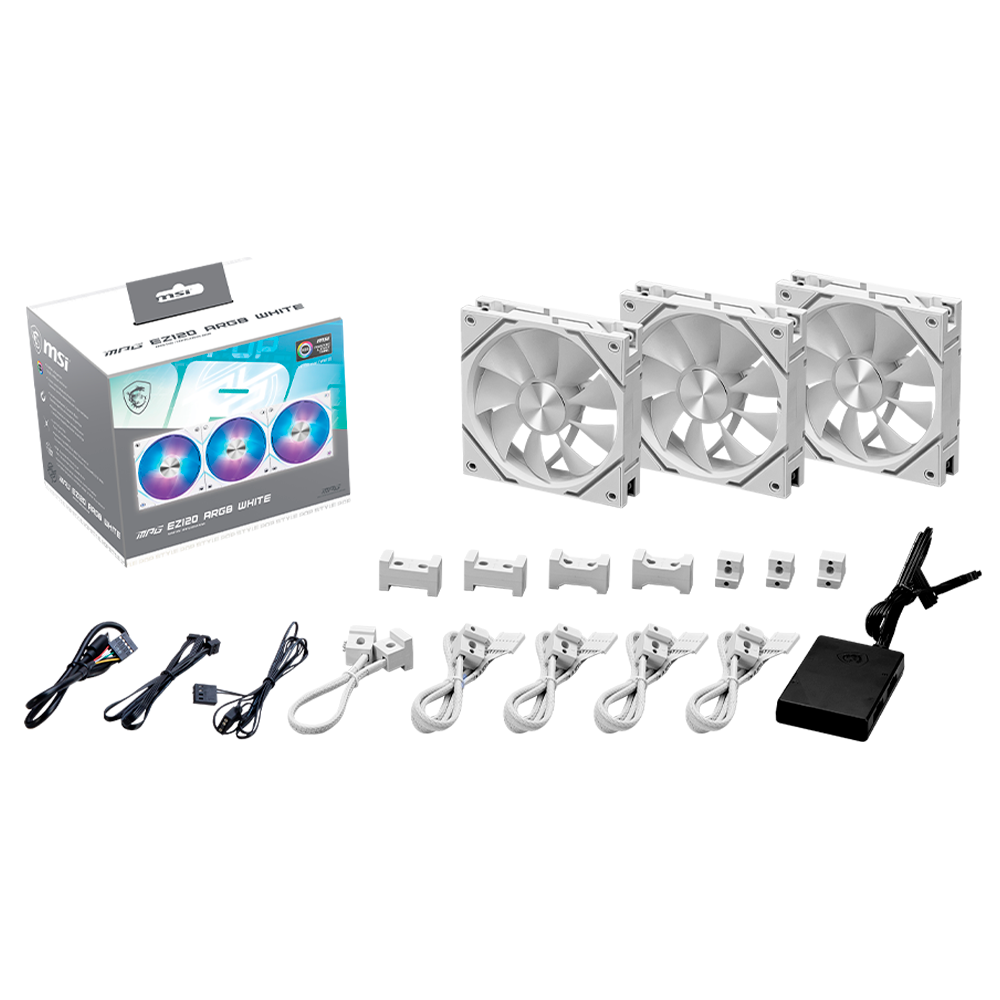 BUNDLE MSI Gabinete MSI MAG PANO 100LPZ, Cristal, ATX-Micro-ATX/ITX, MAG PANO 100L PZ WHITE, Compatible Con Tarjetas Madre PROJECT ZERO + Kit 3 Ventiladores MSI MPG EZ120 ARGB, 3X120mm, ARGB LED, 0~1900 RPM, White