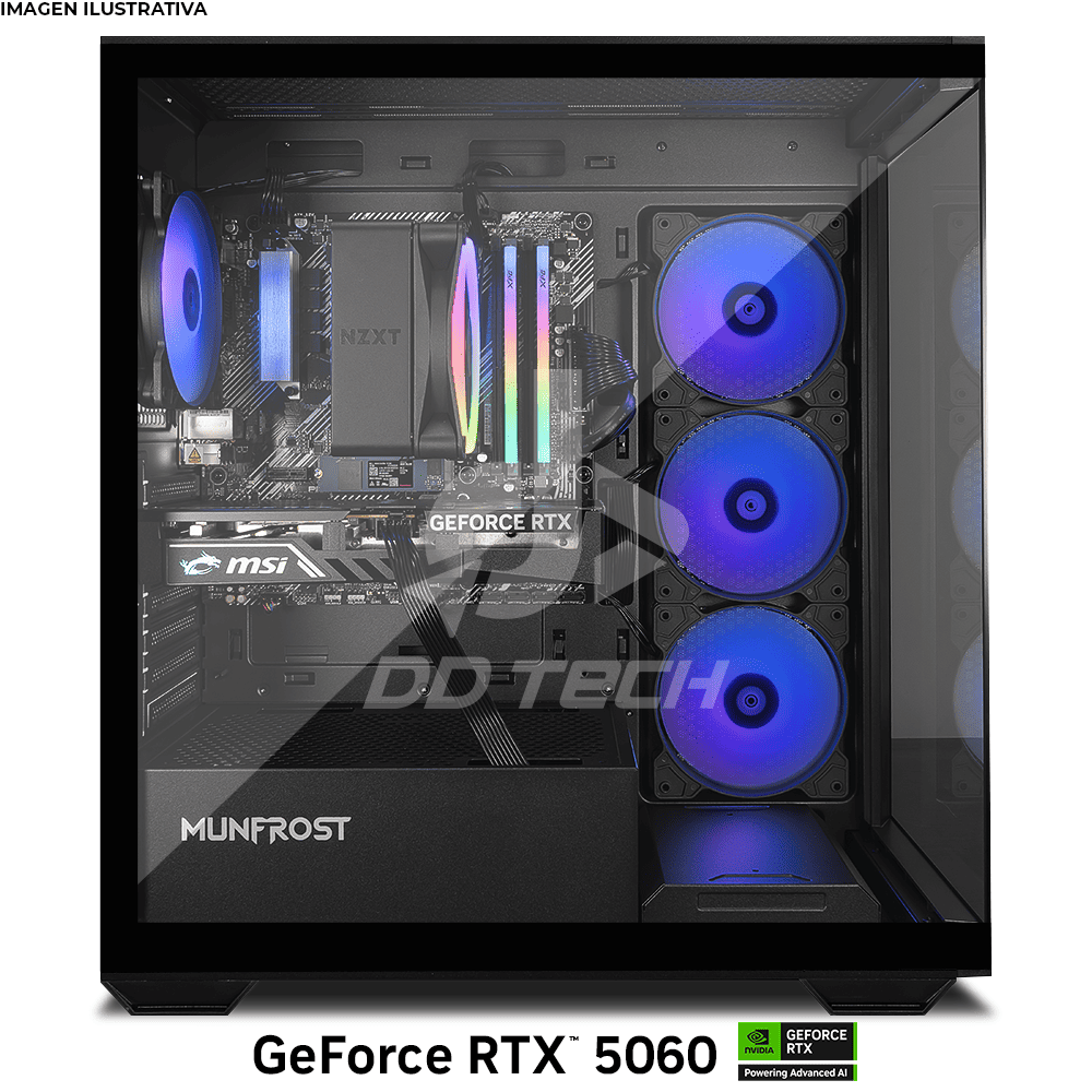 Computadora ULTIMATE PC WARDEN, POWERED BY MSI, RTX 5060 8GB GDDR7, AMD Ryzen 7 5700X, 32GB RAM, 1TB SSD M.2 PCIe Gen4, 650W 80+ BRONZE, WiFi y Bluetooth, Licencia Windows 11 de regalo, MSIULT, RTXS50