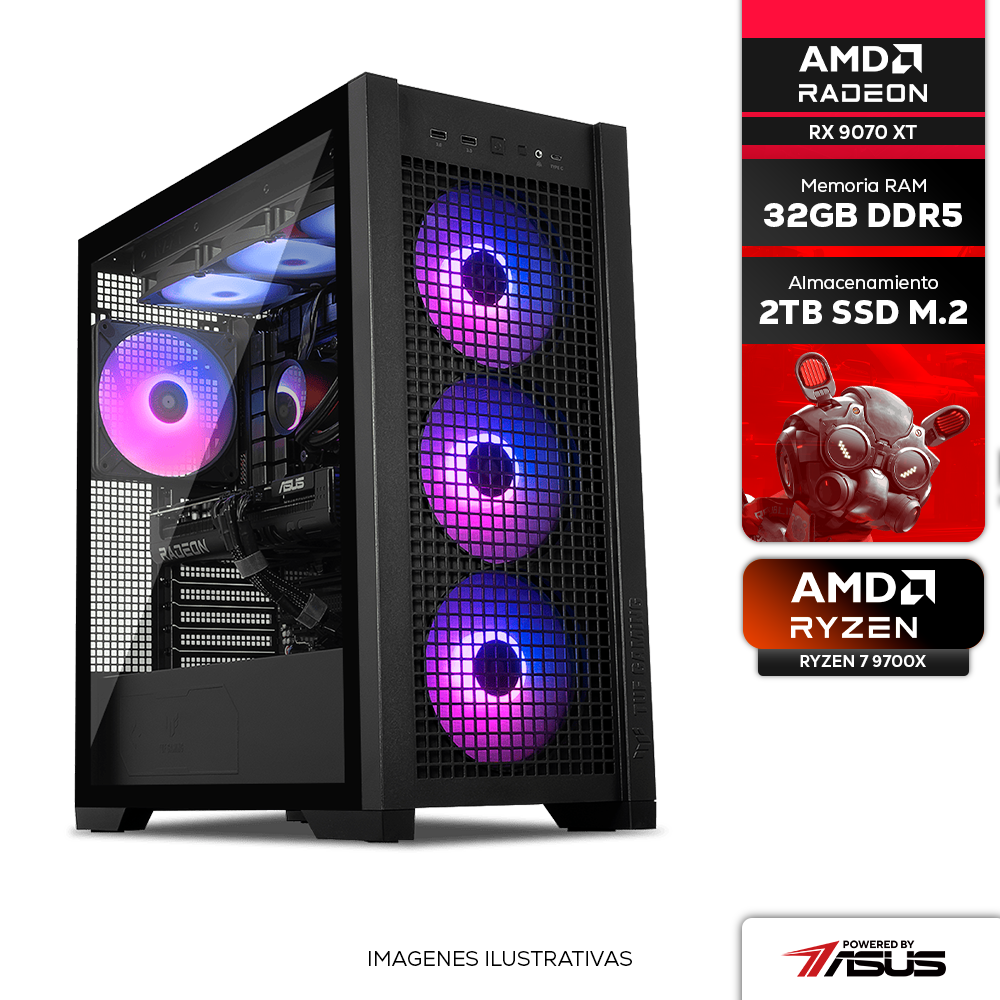 Home Computadoras ESCRITORIO Computadora PRIDE GAMING PBA LION, RADEON RX 9070 XT, AMD RYZEN 7 9700X, 32GB RAM, 2TB SSD M.2 NVMe 6000MB/S, ENF. LIQ. 360MM RGB, 850W 80+ GOLD, INCLUYE WIFI Y BLUETOOTH