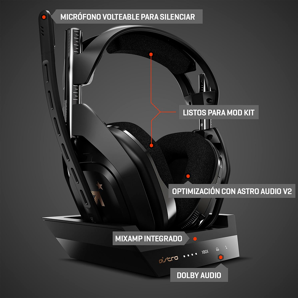 Home AUDIO DIADEMAS Diadema Gamer ASTRO A50 WIRELESS, Micrófono Inalámbrico, Estación de Carga, Sonido Envolvente Dolby 7.1, Compatibles con Xbox Series X y S, Xbox One, PC, Negro, 939-001681