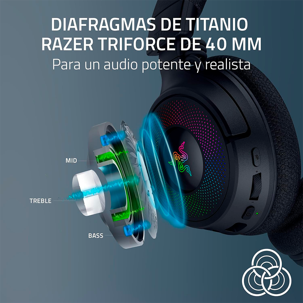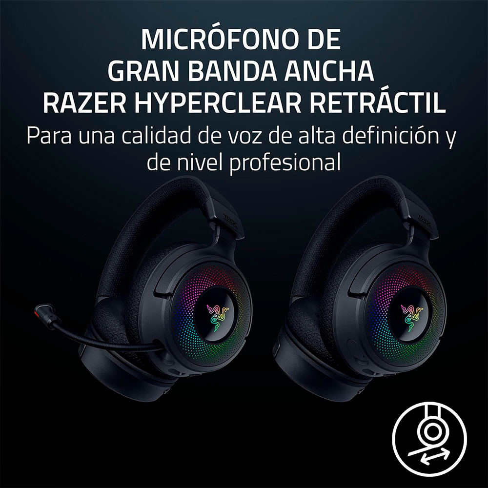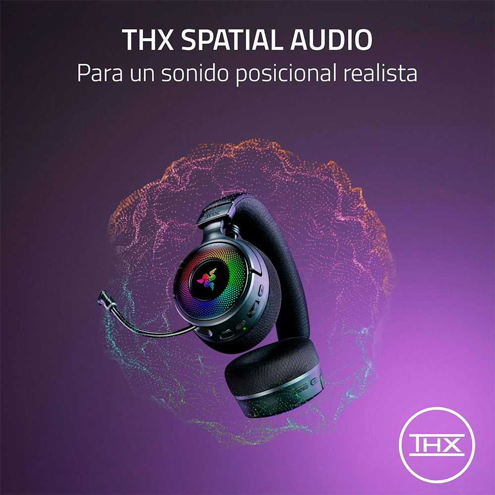 Home AUDIO DIADEMAS Diadema Gamer Razer Kraken V4 Wireless, Inalámbricos, 2.4GHz, USB, Micrófono de Banda Ancha, Altavoces de 40 mm, Ajuste Rápido de Volumen, Iluminación RGB en 9 Zonas, Para PC, Mac, PS5, RZ04-05170100-R3U1