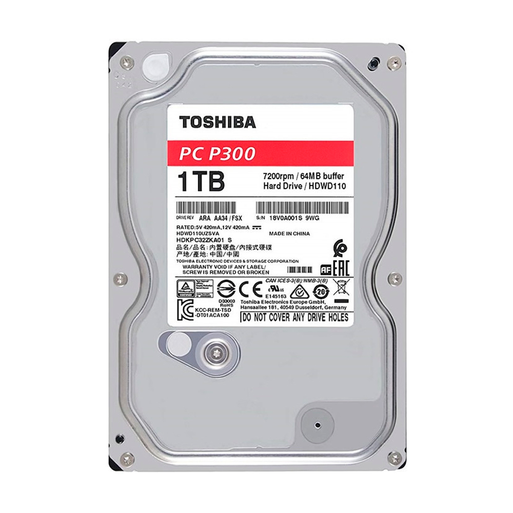 Disco Duro Interno Toshiba P300, 1TB 3.5″ SATA3 7200RPM, Nuevo, HDWD110UZSVA
