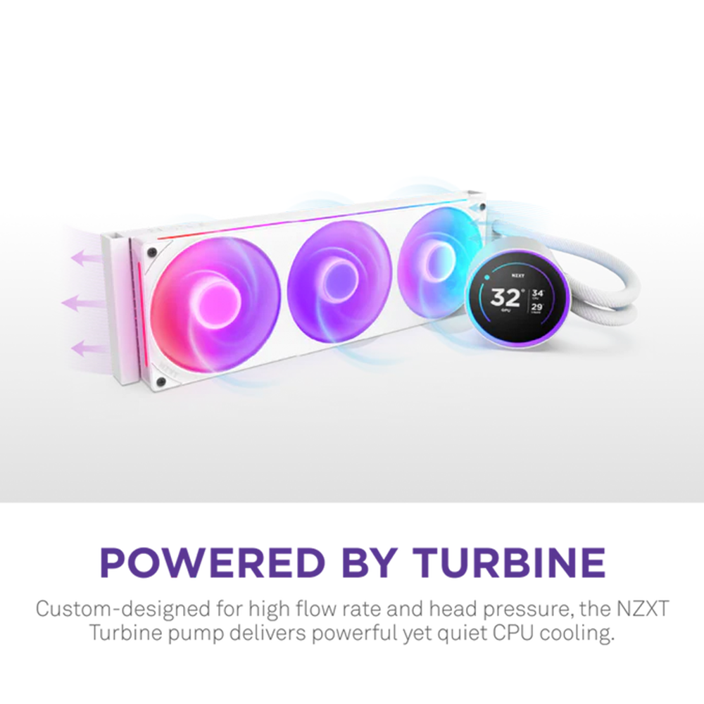 Enfriamiento Líquido NZXT Kraken Elite 420 RGB 2025, 420mm, Ventilador de Núcleo RGB F420, LCD IPS personalizable de 2,7”, Bomba de Turbina NZXT, Blanco, RL-KR42E-W2