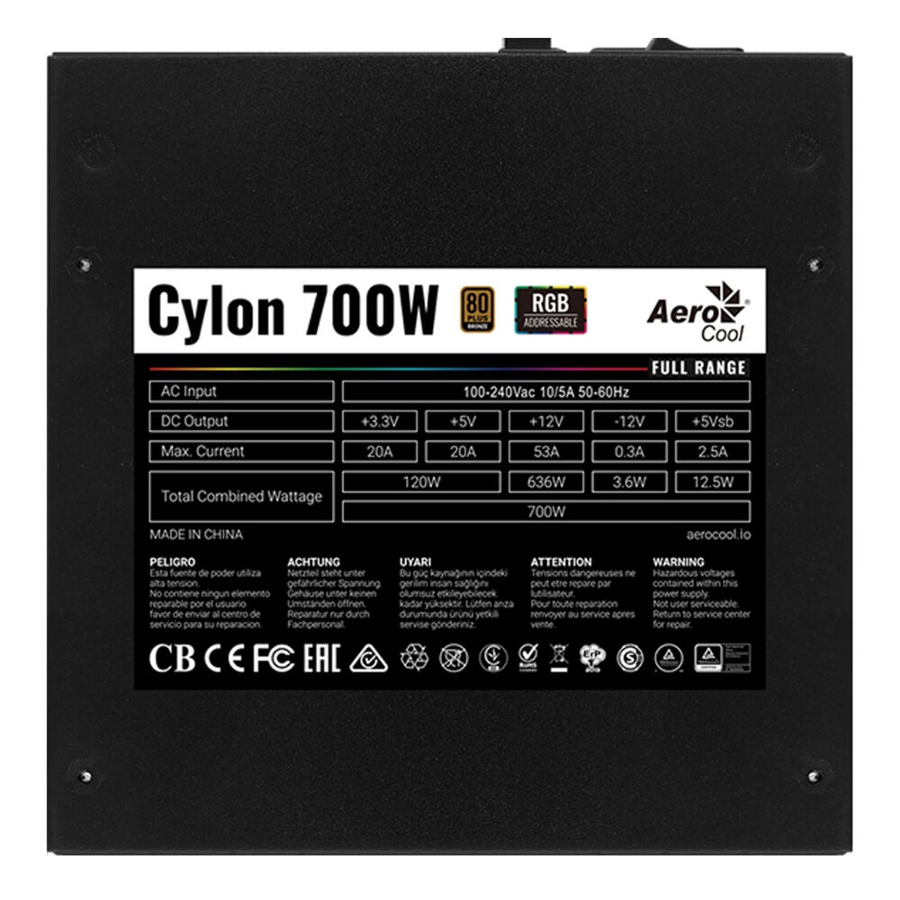 Fuente de poder Aerocool Cylon RGB Full Range 700W Certificacion 80+ Bronze