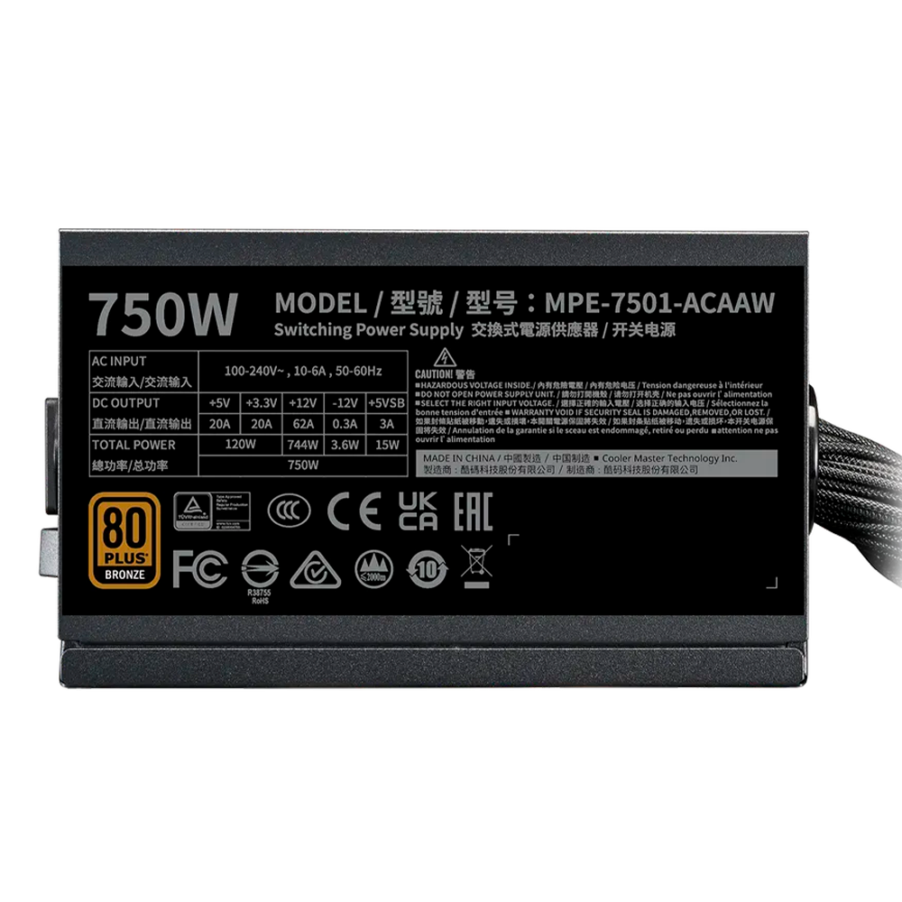 Fuente de Poder Cooler Master MWE GOLD 750 V3, 750W, 80+ Gold, 24-pin ATX, 12VHPWR, 120mm, MPE-7506-ACAG-BUS