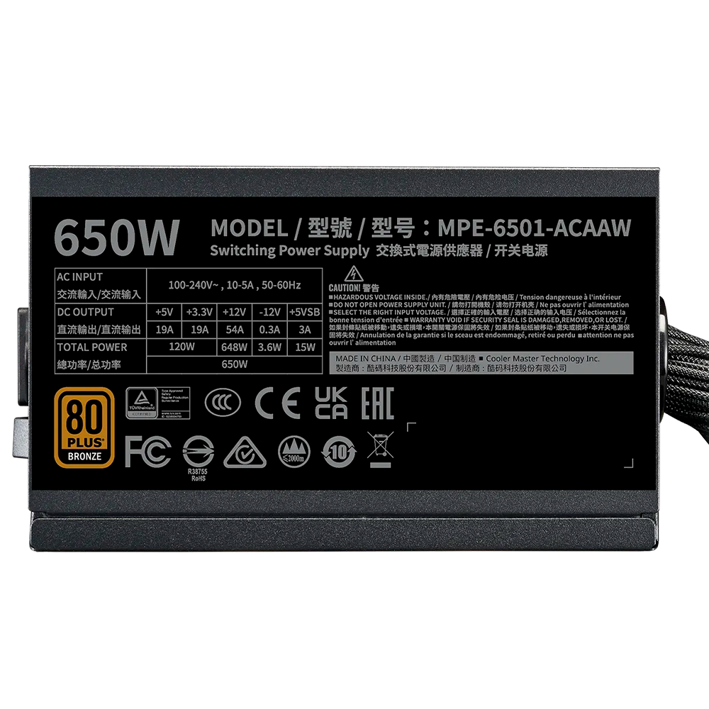 Fuente De Poder Cooler Master MWE V3, 650W, 80+Bronze, MPE-6501-ACAAW-3BUS