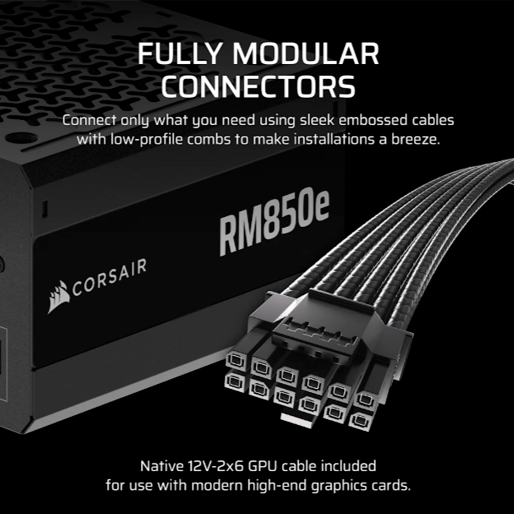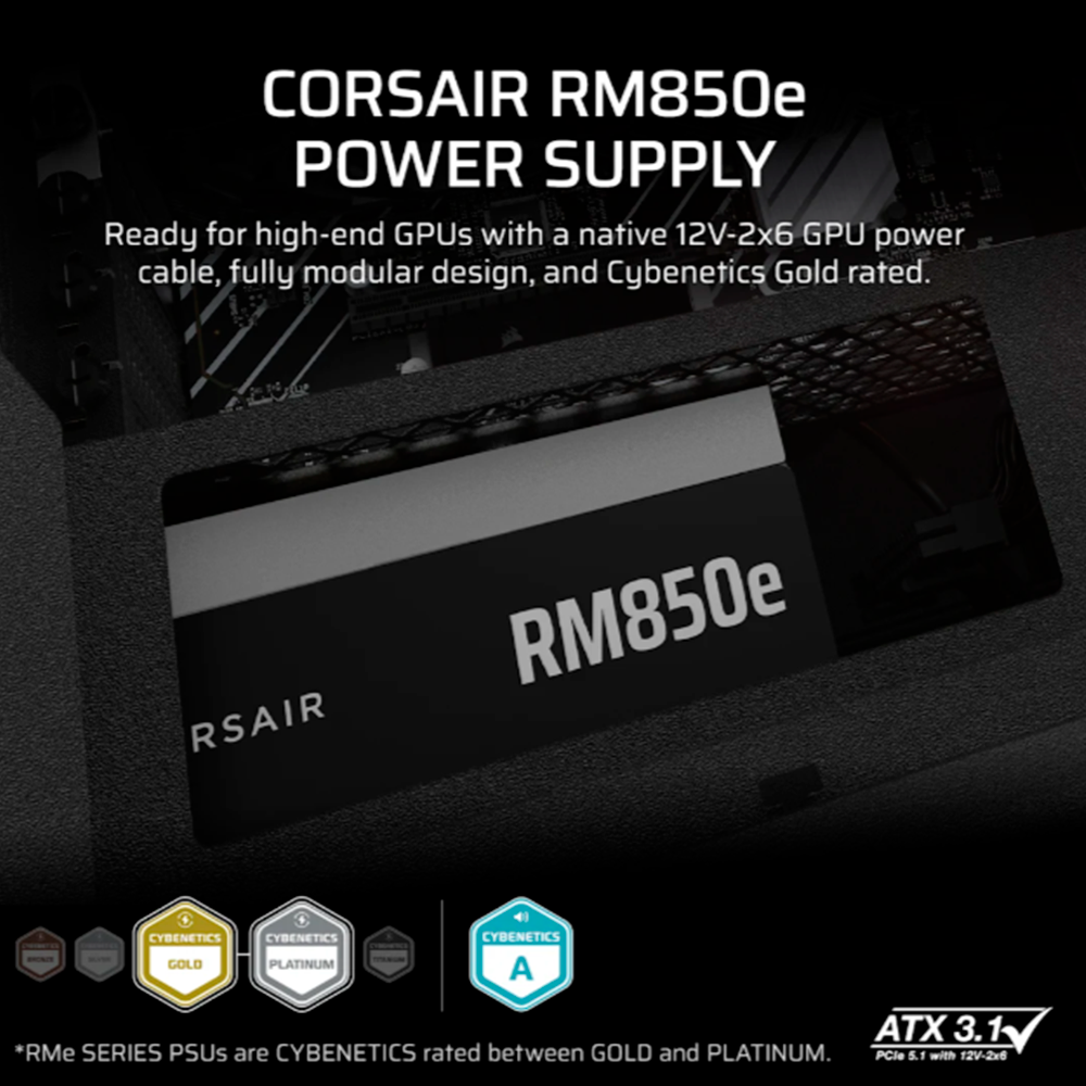 Fuente de Poder Corsair RM850e, 850W, 80+ GOLD, Modular, ATX, 120mm, CP-9020296-NA