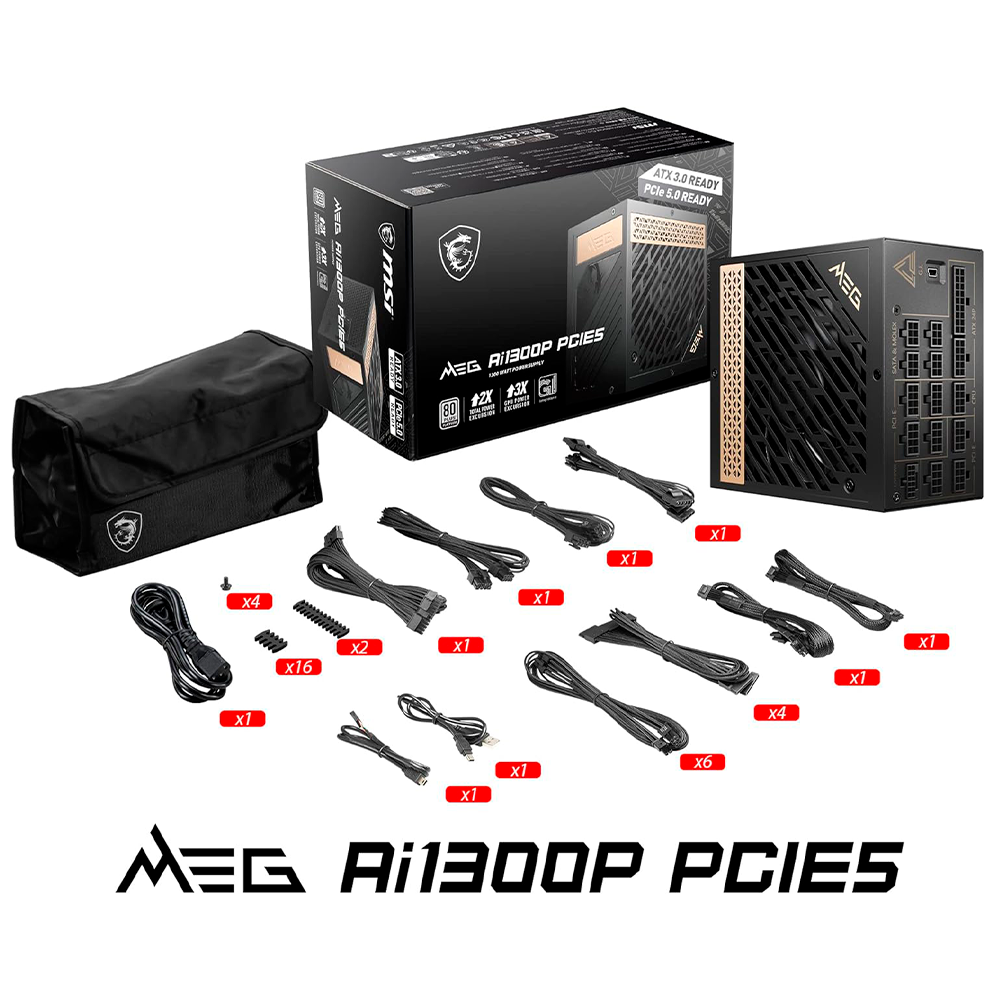 Fuente de Poder MSI MEG Ai1300P, PCIE5 /80+ Platinum, 24-pin ATX, 120mm, 1300W, MEG AI1300P PCIE5/ NAVIDAD