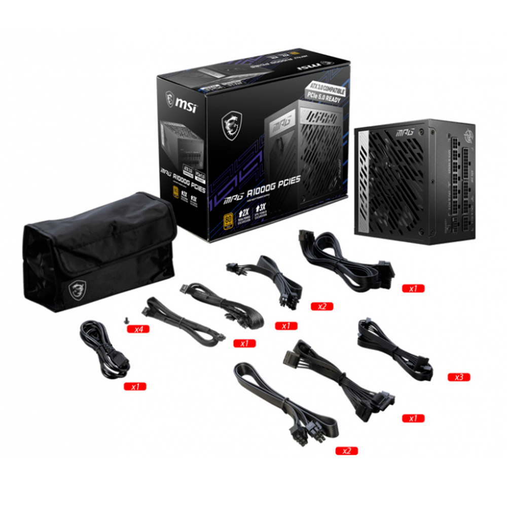 Fuente de Poder MSI MPG A1000G PCIE5 80+ Gold, Full Modula, 20+4 pin ATX, 135mm, 1000W, MPG A1000G PCIE5/