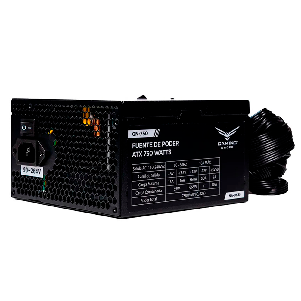 Home COMPONENTES FUENTE DE ALIMENTACIÓN Fuente de Poder Naceb NA-0635, 750W, 80+ Bronze, 24-pin ATX, 120mm, NA-0635
