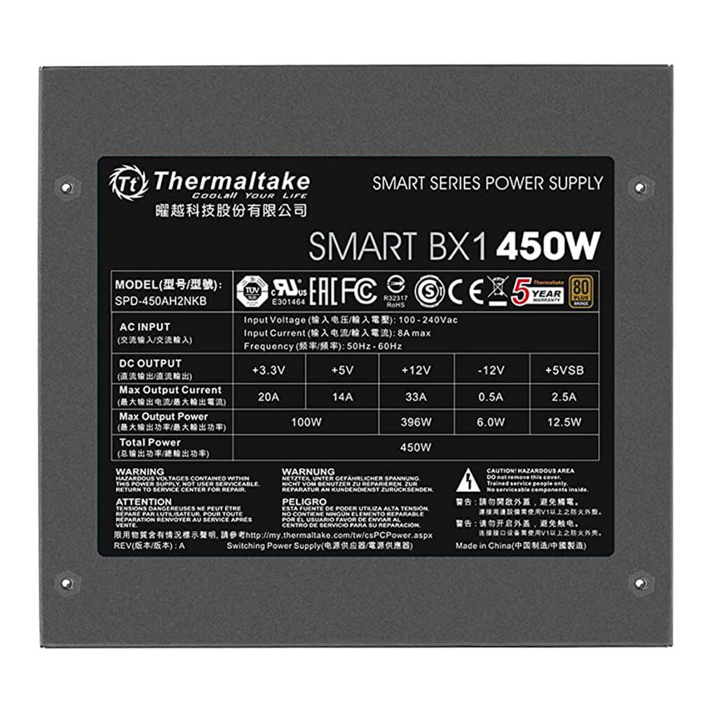 Home COMPONENTES FUENTE DE ALIMENTACIÓN Fuente de poder Thermaltake Smart BX1 450W 80+ Bronze, PS-SPD-0450NNFABU-1