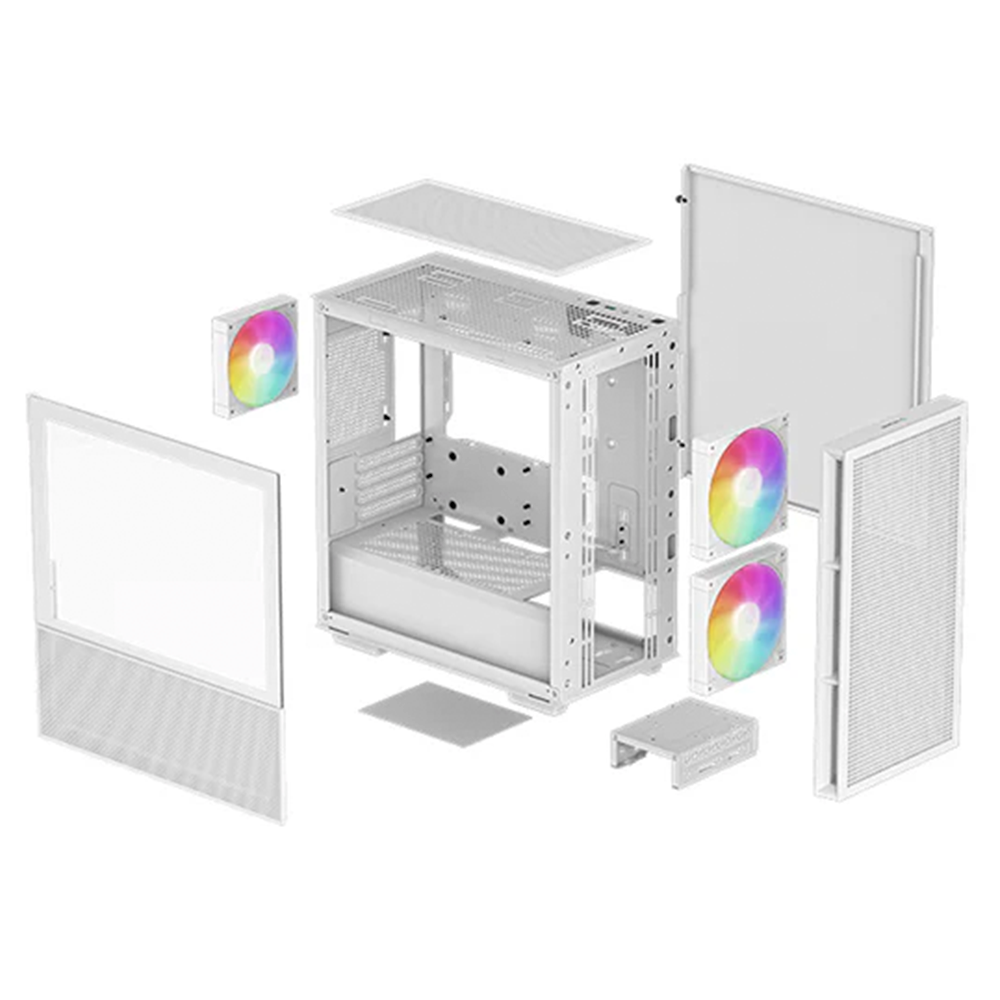 Gabinete DEEPCOOL CH360, Mini-ITX/Micro-ATX, Cristal Templado, Panel Lateral de Cristal con Flujo de Aire Híbrido, 3 Ventiladores Instalados, Blanco, R-CH360-WHAPE3-G-1