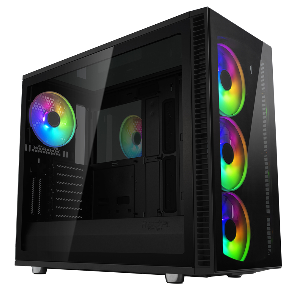 Gabinete Fractal Design Define S2 Vision RGB Negro, Ventana de cristal templado, ATX mITX mATX, Incluye 4 Ventiladores RGB, FD-CA-DEF-S2V-RGB-BKO-TGD