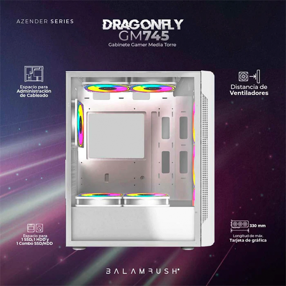 Gabinete Gamer BALAM RUSH Dragonfly II Crystal GM745, Cristal Templado, ATX, 4 Fan, BR-935975
