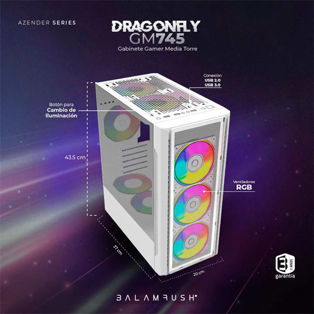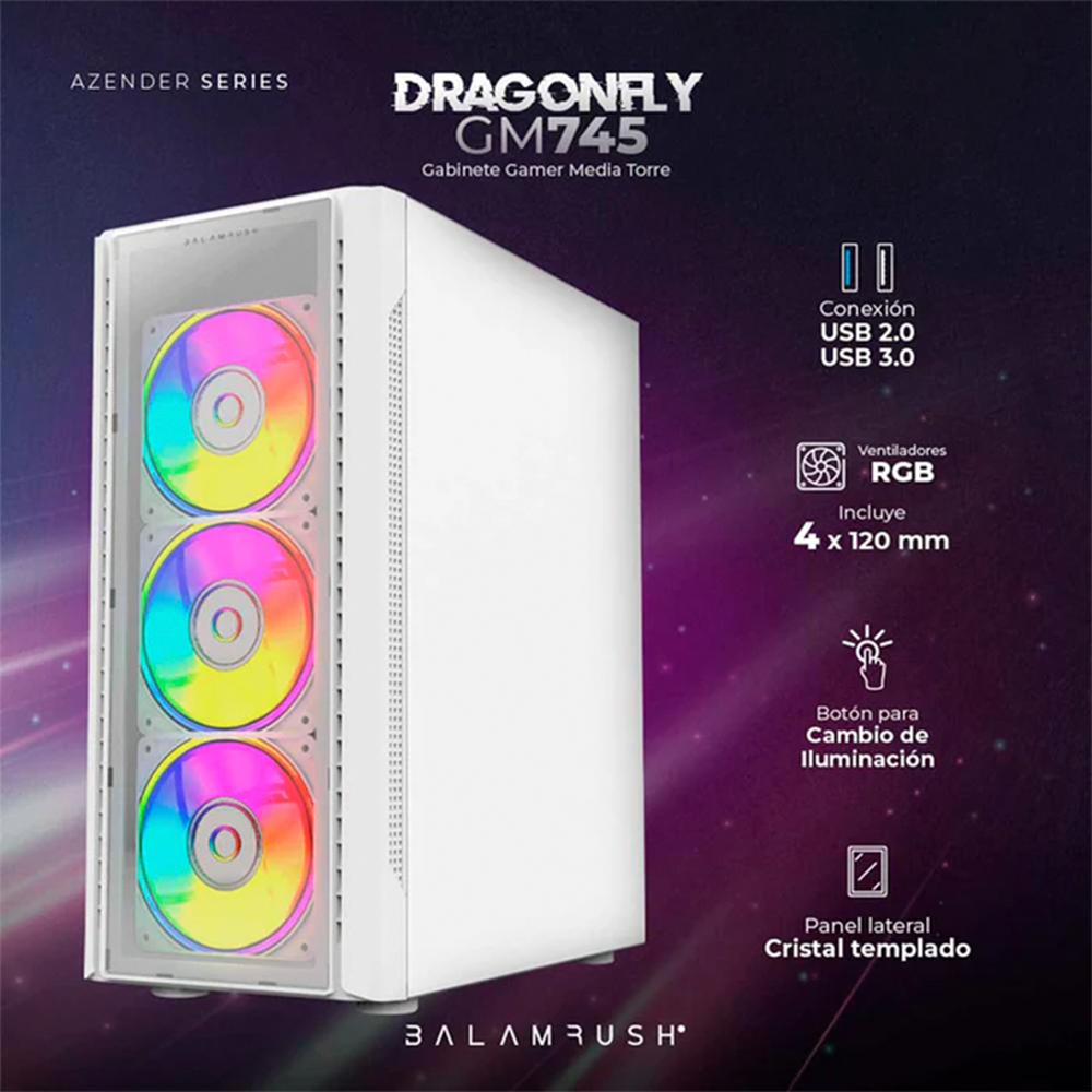 Home COMPONENTES GABINETES Gabinete Gamer BALAM RUSH Dragonfly II Crystal GM745, Cristal Templado, ATX, 4 Fan, BR-935975