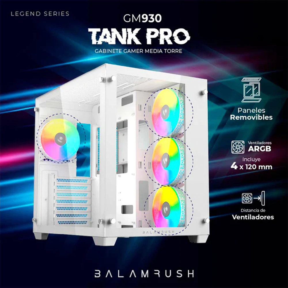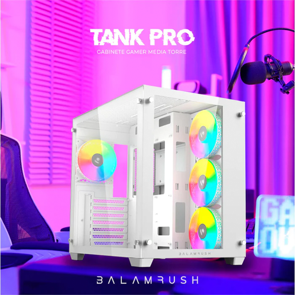 Gabinete Gamer BALAM RUSH Tank Pro GM930, 4 Fan, Cristal Templado, Blanco, BR-935951