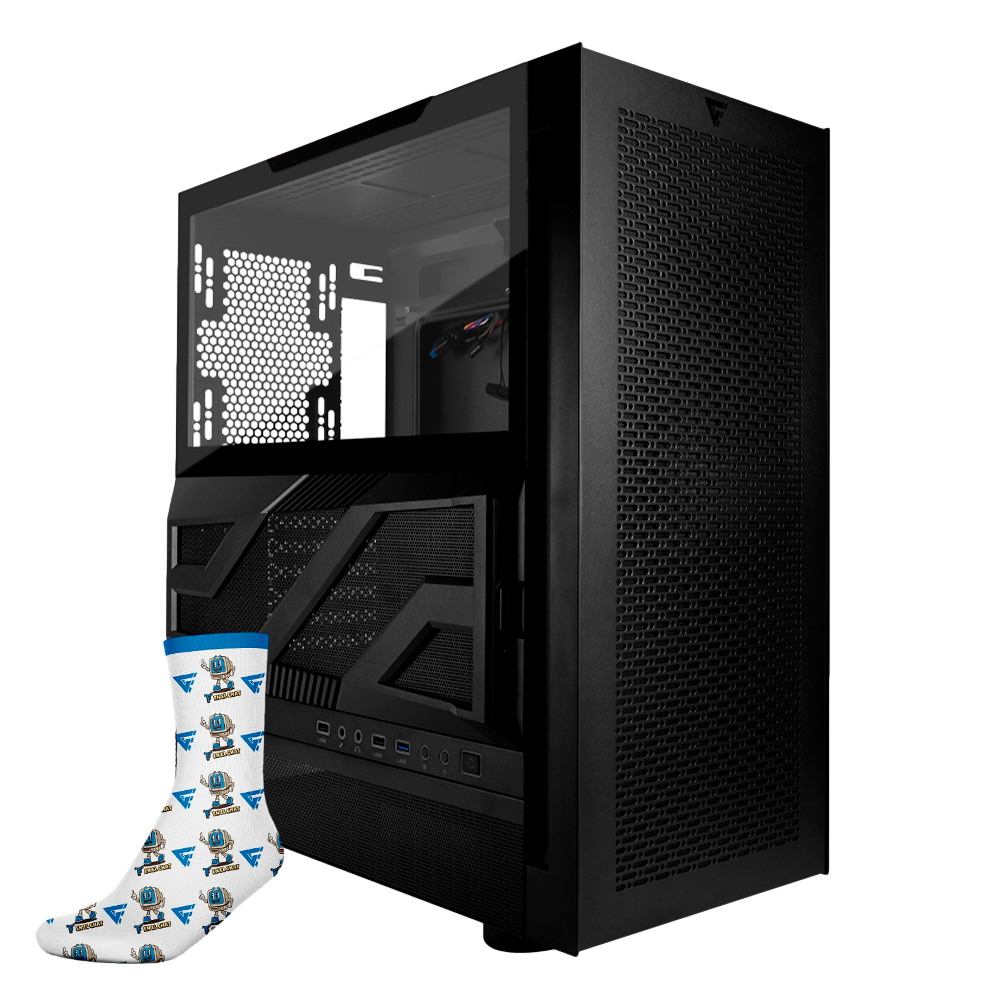 Gabinete Gamer Game Factor CSG800 Black, Atx, Cristal Templado, Filtro Para Polvo, Usb 3.0, Negro, CSG800, GRATIS! Calcetines Game Factor