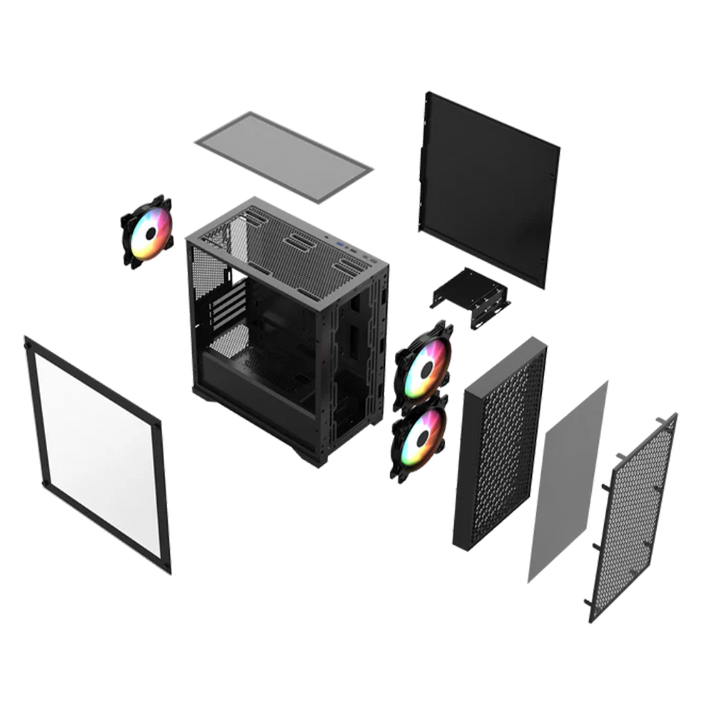 Gabinete Cooler Master Elite 690 Wood, ATX/Micro-ATX, 2×USB 3.0, 3×120mm ARGB, Cristal Templado, Negro, E690-KHNN-S00