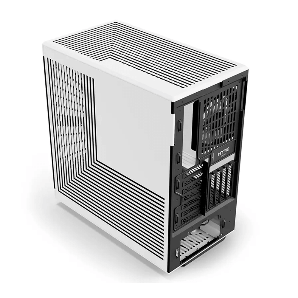 Gabinete HYTE Y40, ATX Mid Tower, 2x 120mm ventiladores pre instalados, Cristal Templado panorámico moderno y estético con cable elevador PCIE 4.0 incluido, Color Negro con Blanco, CS-HYTE-Y40-BW/ NAVIDAD