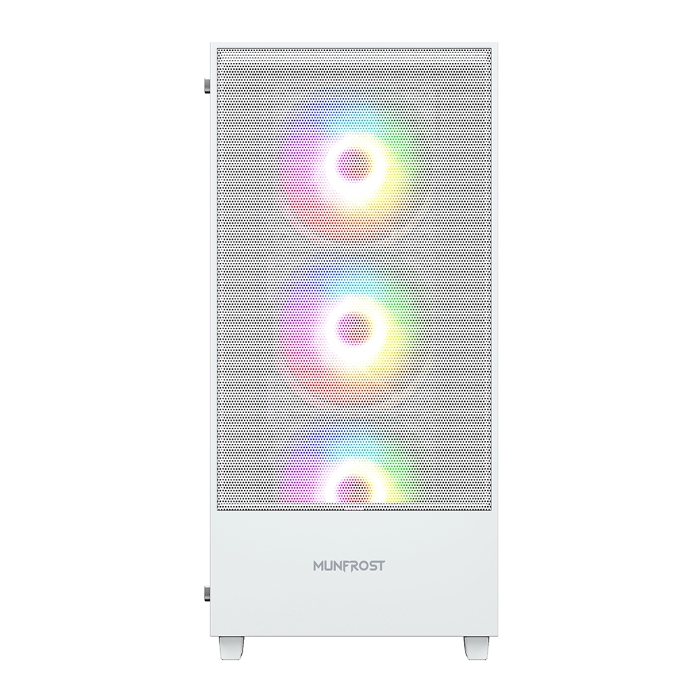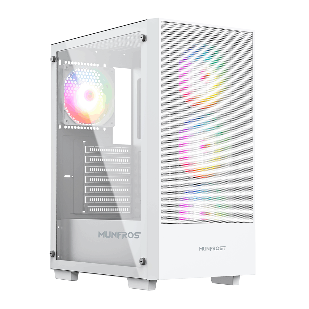 Home COMPONENTES GABINETES Gabinete Munfrost Alpha White, Cristal templado, ARGB Sync, Controlador de ventiladores, Atx – Micro ATX – Mini ITX, 4 Ventiladores ARGB incluido