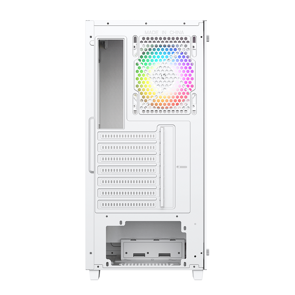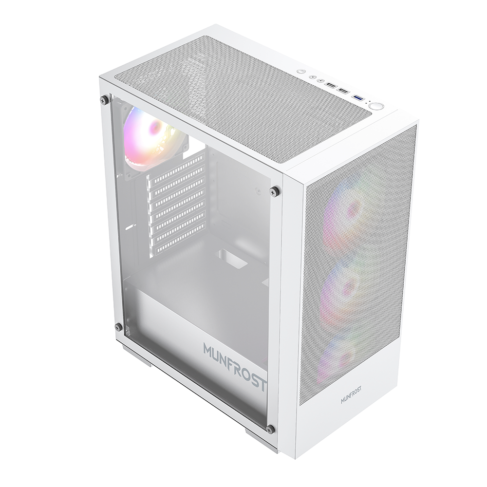 Gabinete Munfrost Alpha White, Cristal templado, ARGB Sync, Controlador de ventiladores, Atx – Micro ATX – Mini ITX, 4 Ventiladores ARGB incluido