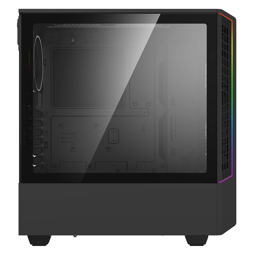 Gabinete Cougar OMNYX, RGB, Cristal Templado, Midi-Tower, Mini-ITX/Micro-ATX/ATX, USB 3.0/2.0, Sin Fuente, 4 Ventiladores Instalados, Negro, 382WA30.0001