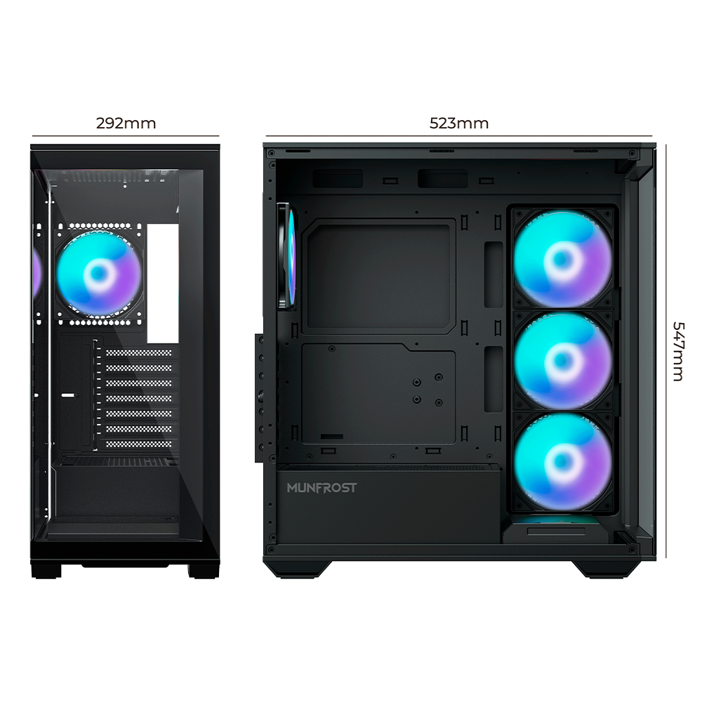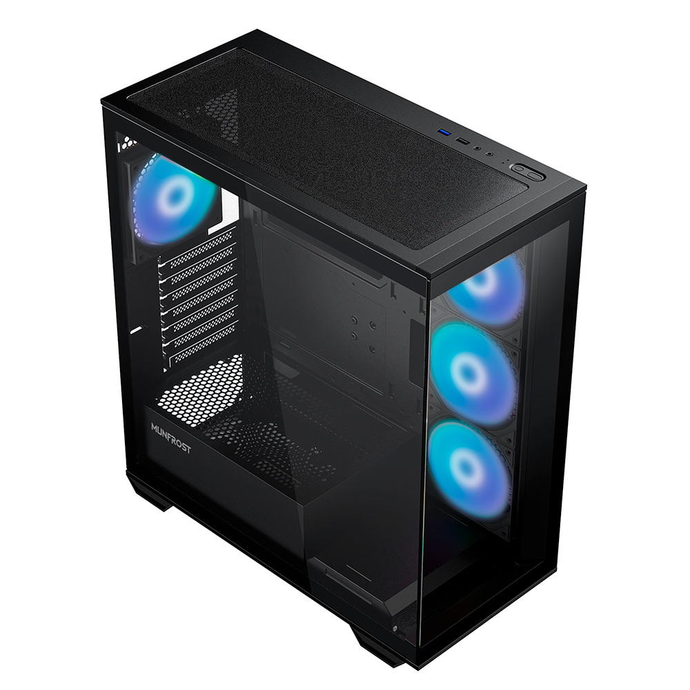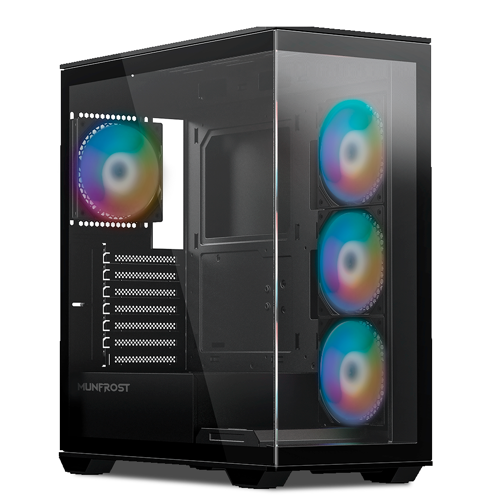 Gabinete Munfrost POLARIS, Cristal templado, ARGB, ATX-Micro ATX-Mini ITX, BLACK, 4 Ventiladores ARGB Incluidos, CGPOLARISBMFT/