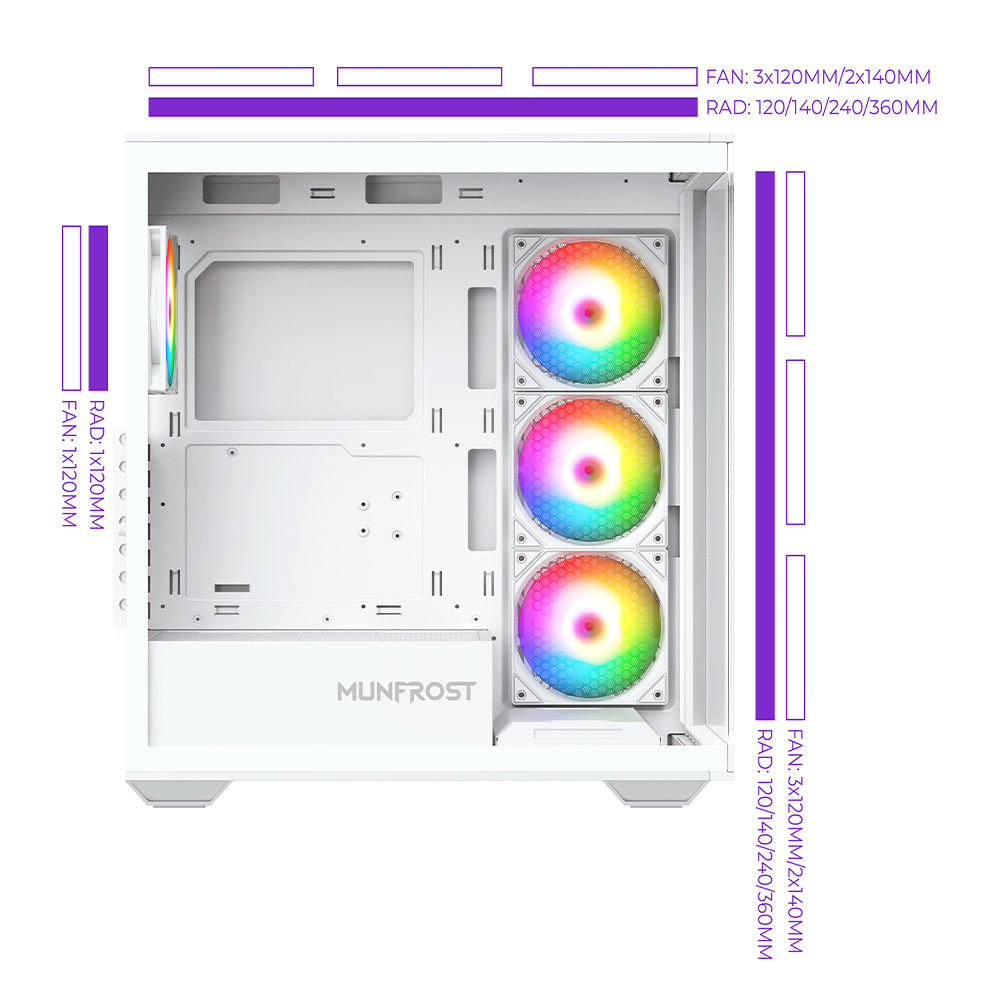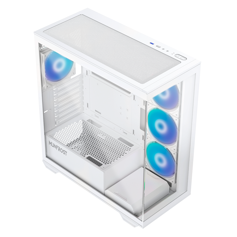 Gabinete Munfrost POLARIS, Cristal templado, ARGB, ATX-Micro ATX-Mini ITX, WHITE, 4 Ventiladores ARGB Incluidos, CGPOLARISWMFT/