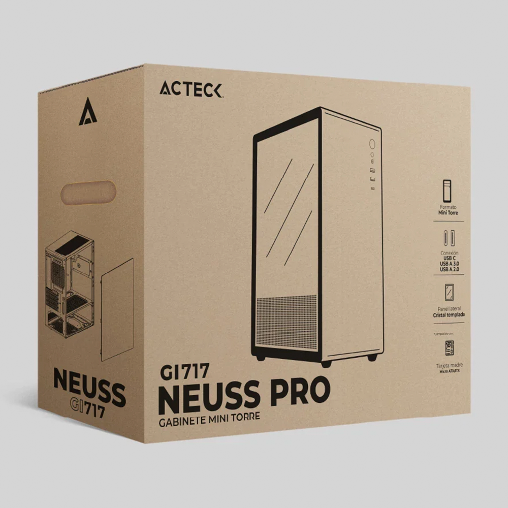 Home COMPONENTES GABINETES Gabinete Neuss Pro GI717, Mini-Tower, ITX/Mini-ATX, Usb 3.0,Usb TipoC, Blanco, AC-936002