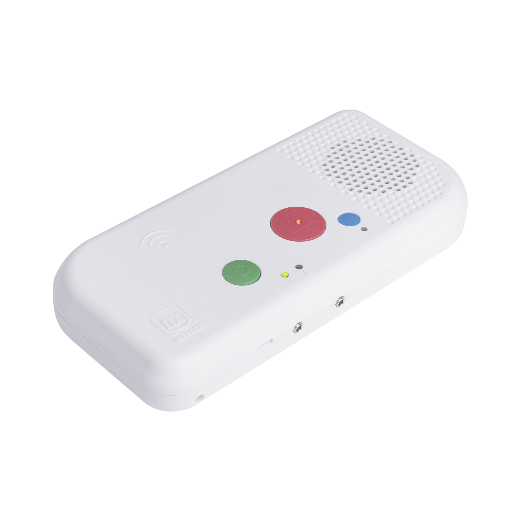 Posee tres botones que permiten generar y cancelar alarmas asistenciales, incluyendo el botón azul para llamada de médico. Además, gracias a su lector RFID integrado, el personal del centro puede indentificarse mediante tarjeta y registrar presencia en la habitación.