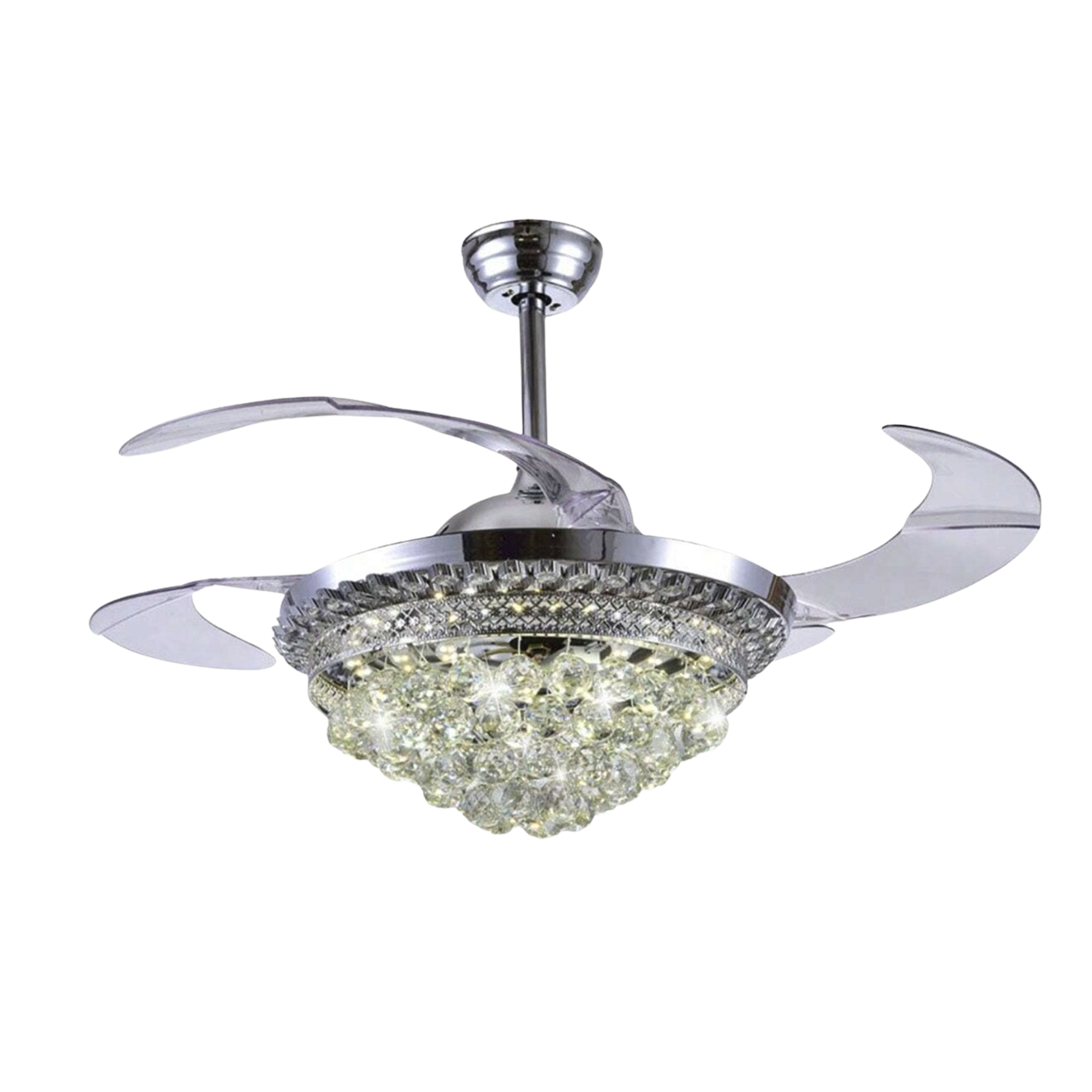 Ventilador de techo de cristal con aspas de acrílico transparentes retráctiles de ABS, lámpara de LED ideal para sala de estar, comedor y dormitorio.