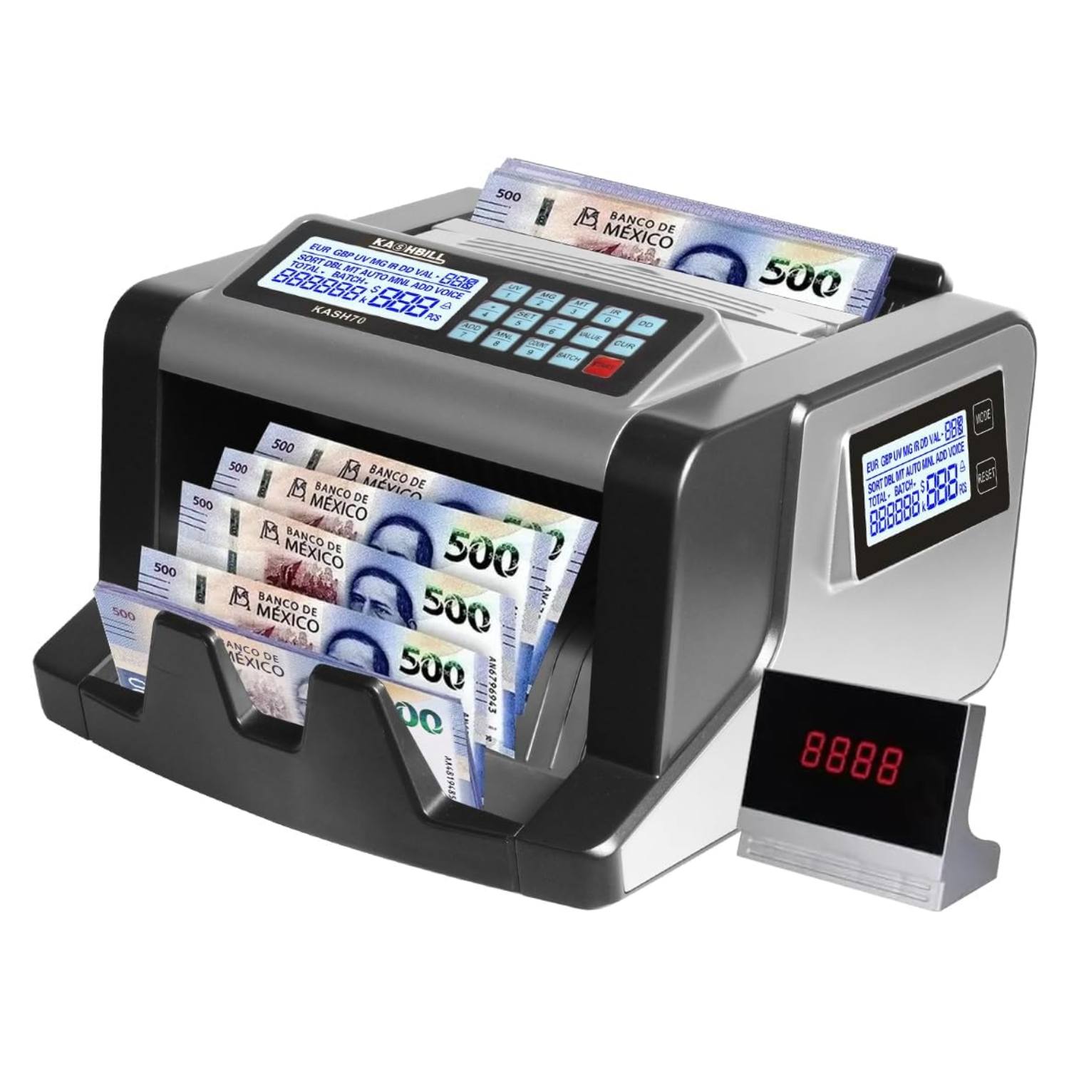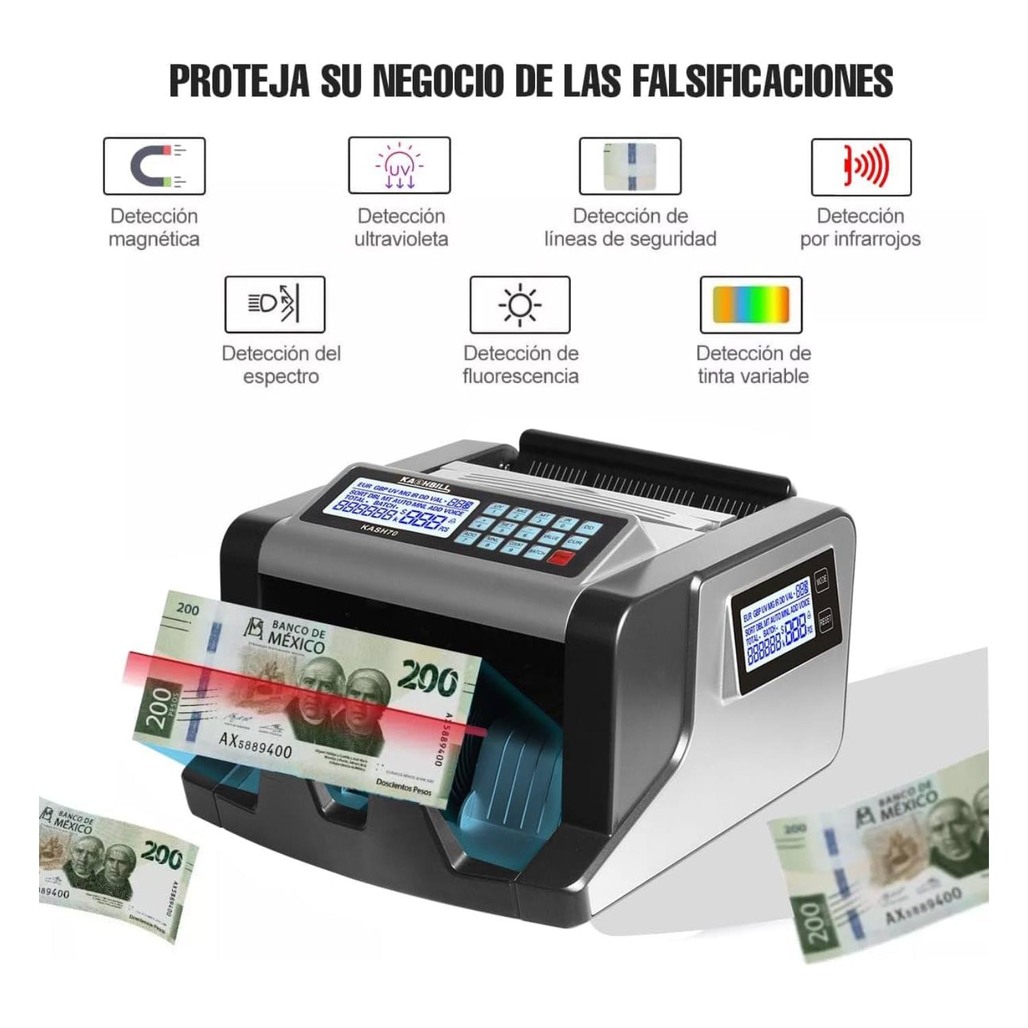 KASHBILL MÁQUINA CONTADORA DE BILLETES 24 X 21 X 16 CM, CON PANTALLA LCD Y VERIFICADOR DE BILLETES FALSOS, 1000 BILLETES POR MINUTO, CONTADOR DE BILLETES MEXICANOS E INTERNACIONALES MODELO KASH80