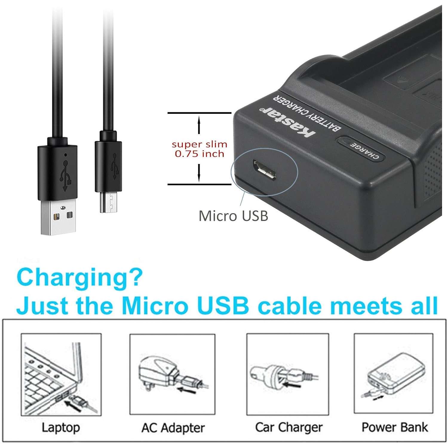- Paquete de 2 baterías Kastar de alta capacidad. Utiliza celdas japonesas de alta calidad para una mayor duración de la batería sin efecto memoria.