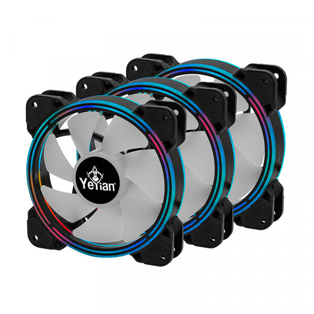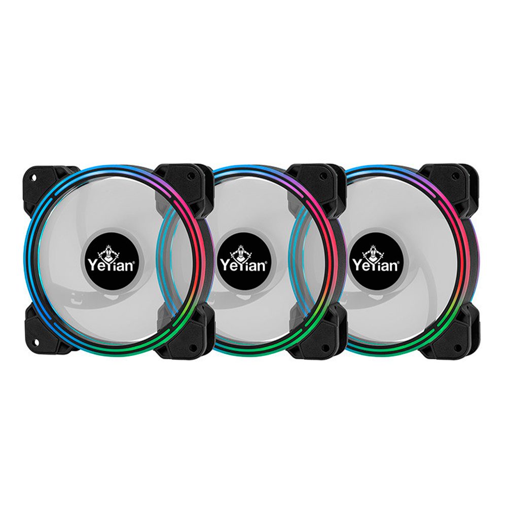 Home COMPONENTES VENTILACIÓN Kit 3 Ventiladores Yeyian Typhoon LII Master ARGB LED, 120mm, 1300RPM, Negro, 3 Piezas, incluye HUB, 2 Tiras Led, YCF-3KFS-01