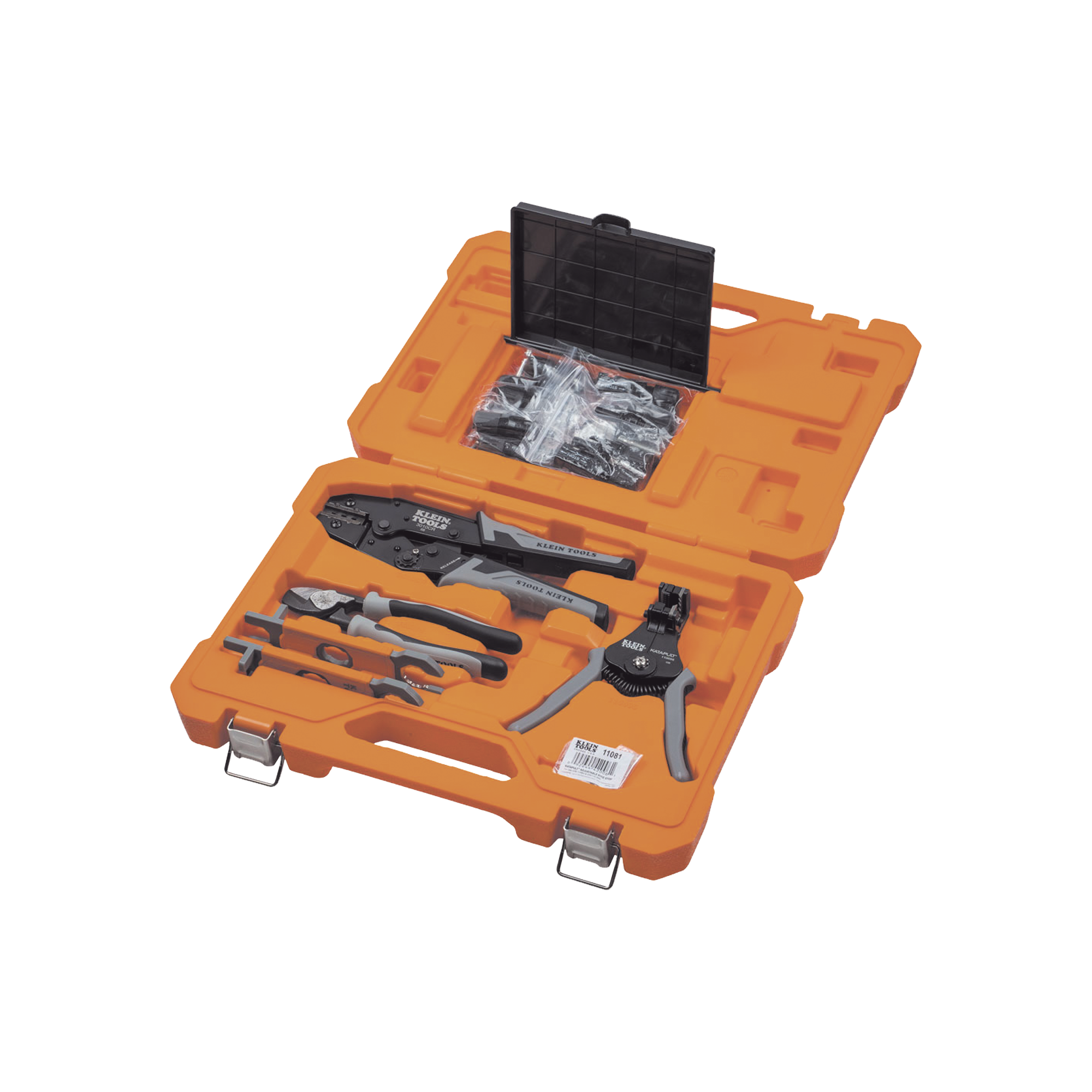 (1) ponchadora, (1) cortador, (1) pelacables, (2) llaves solares, estuche