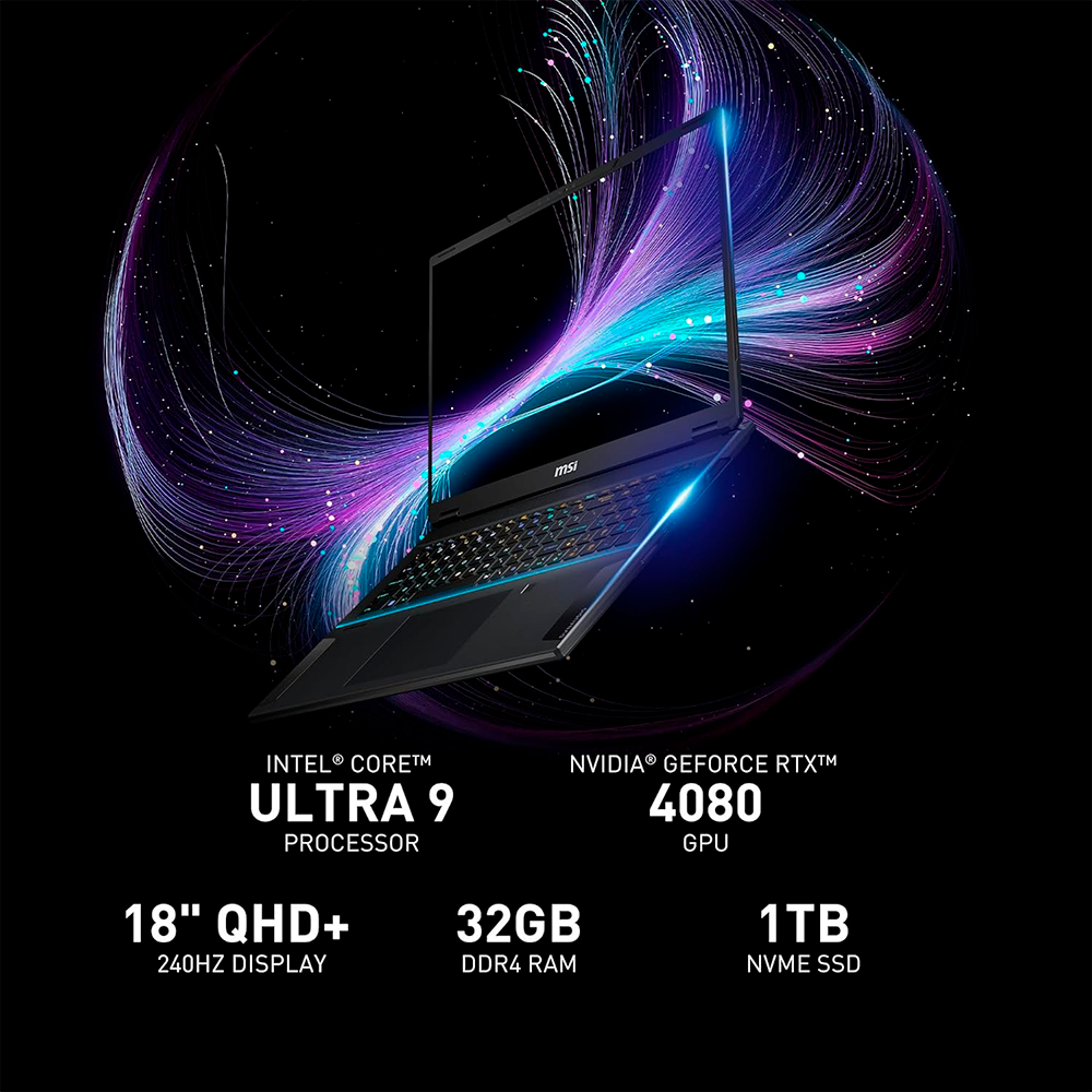 Laptop Gamer MSI STEALTH 18 AI STUDIO A1VHG, 240Hz, QHD+, Intel Ultra 9-185H, NVIDIA Geforce RTX 4080, 32GB DDR5, 1TB NVMe SSD, Cooler Boost 5, STEALTH 18 AI STUDIO A1VHG