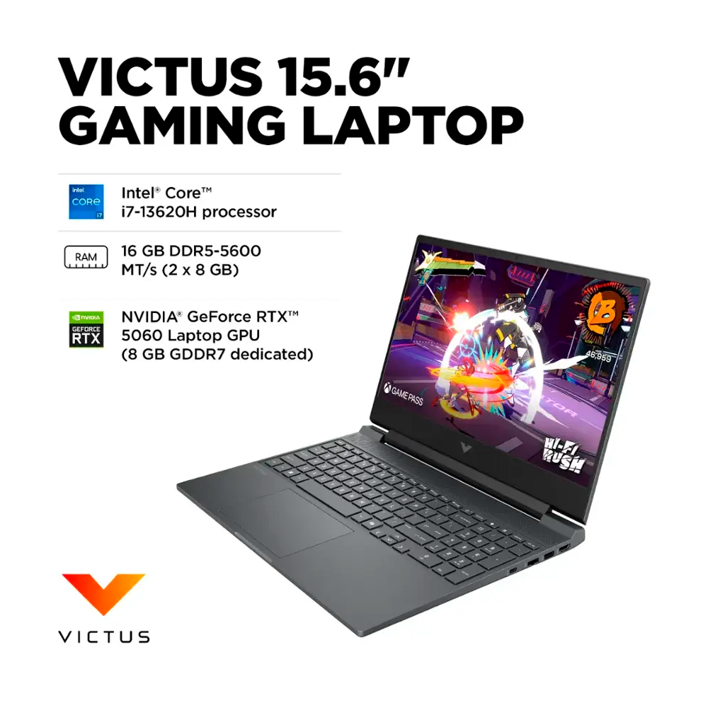 Home Computadoras PORTÁTILES Laptop HP Victus 15-FA2787NR, Intel i7-13620H, 16GB RAM, RTX 5060, 512GB SSD, 15-FA2787NR/ NAVIDAD