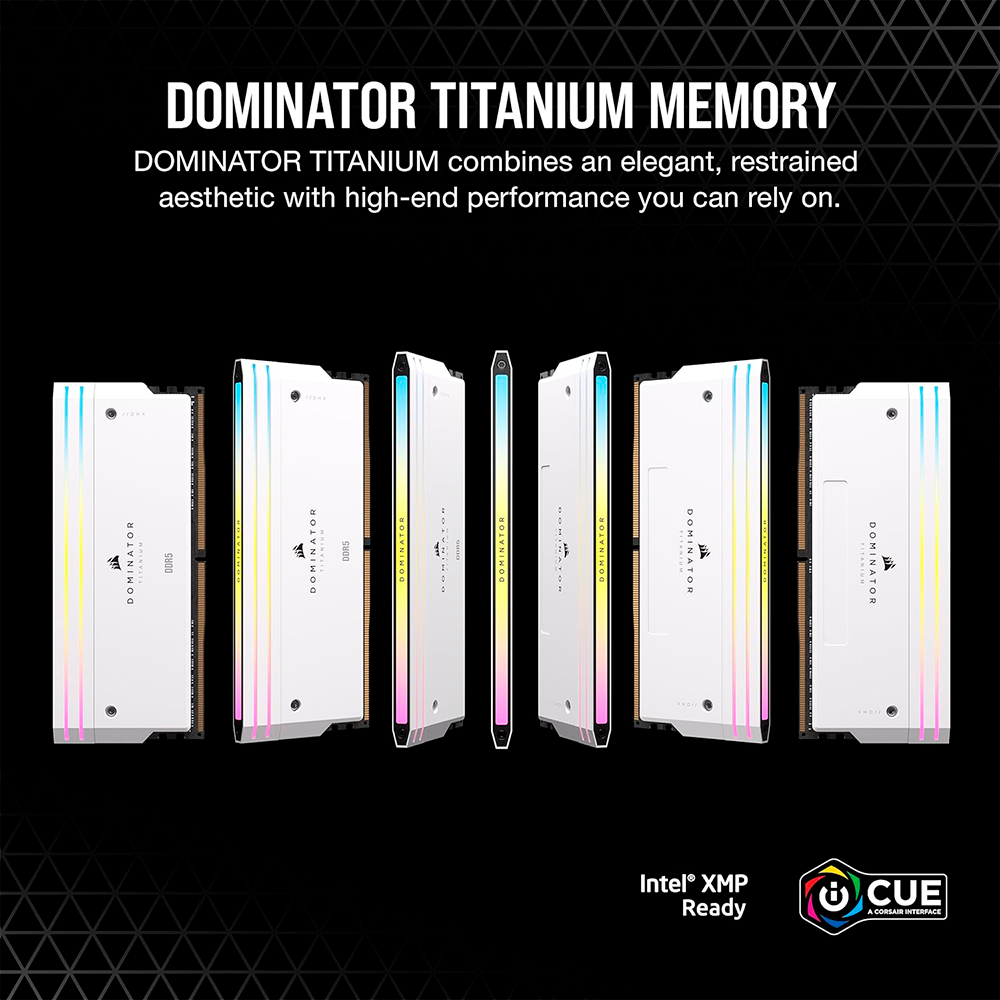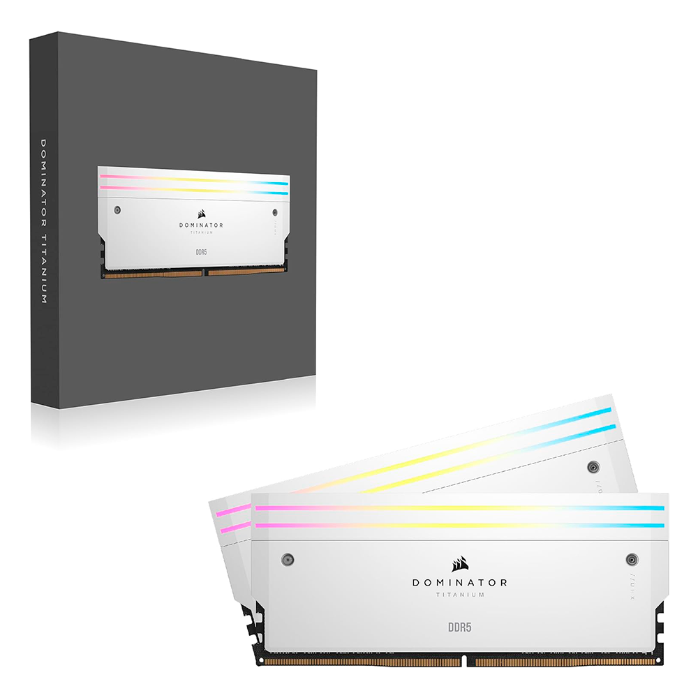 Home COMPONENTES MEMORIA RAM Memoria RAM Corsair Dominator Titanium, DDR5, 7000MHz, 48GB (2x24GB), CL36, XMP, Blanco, CMP48GX5M2B7000C36W /MAX. 1 X CLIENTE