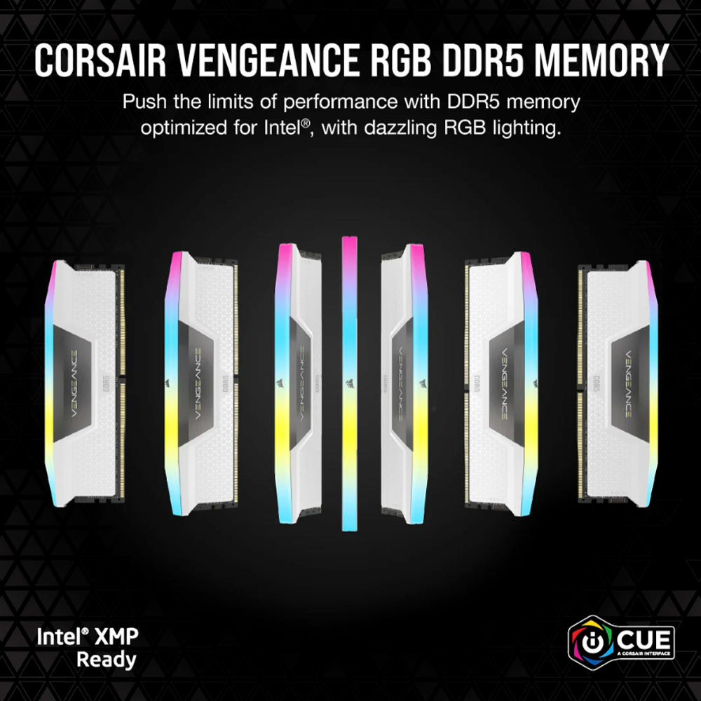 Memoria RAM Corsair Vengeance RGB, 64GB (2x32GB), DDR5, 6000MHz, CL30, iCUE, Blanco, CMH64GX5M2B6000C30W /MAX. 1 X CLIENTE