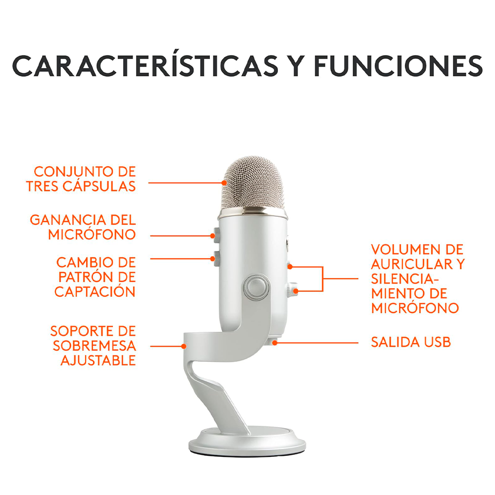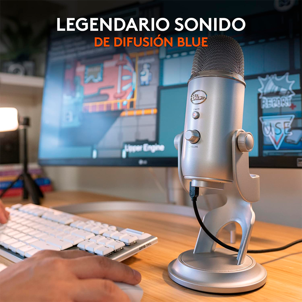 Home AUDIO MICROFONOS Micrófono Blue Yeti, PC, Mac, Juegos, Grabaciones, Streaming, Podcast, 4 Patrones de Captación, Silver, 988-000506/ NAVIDAD