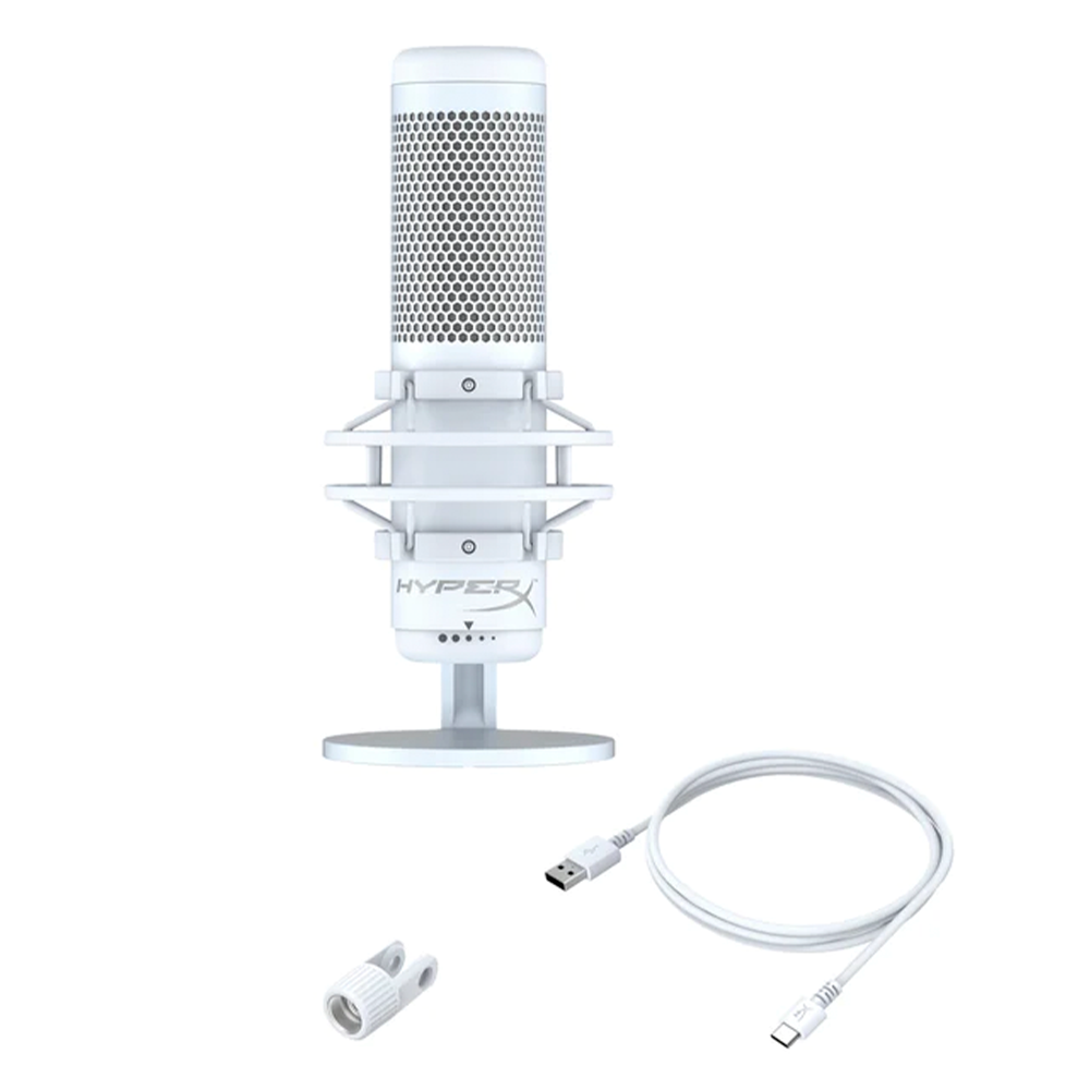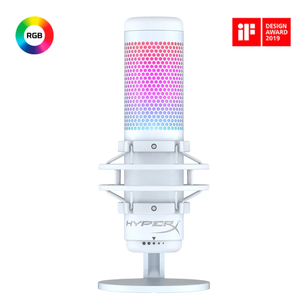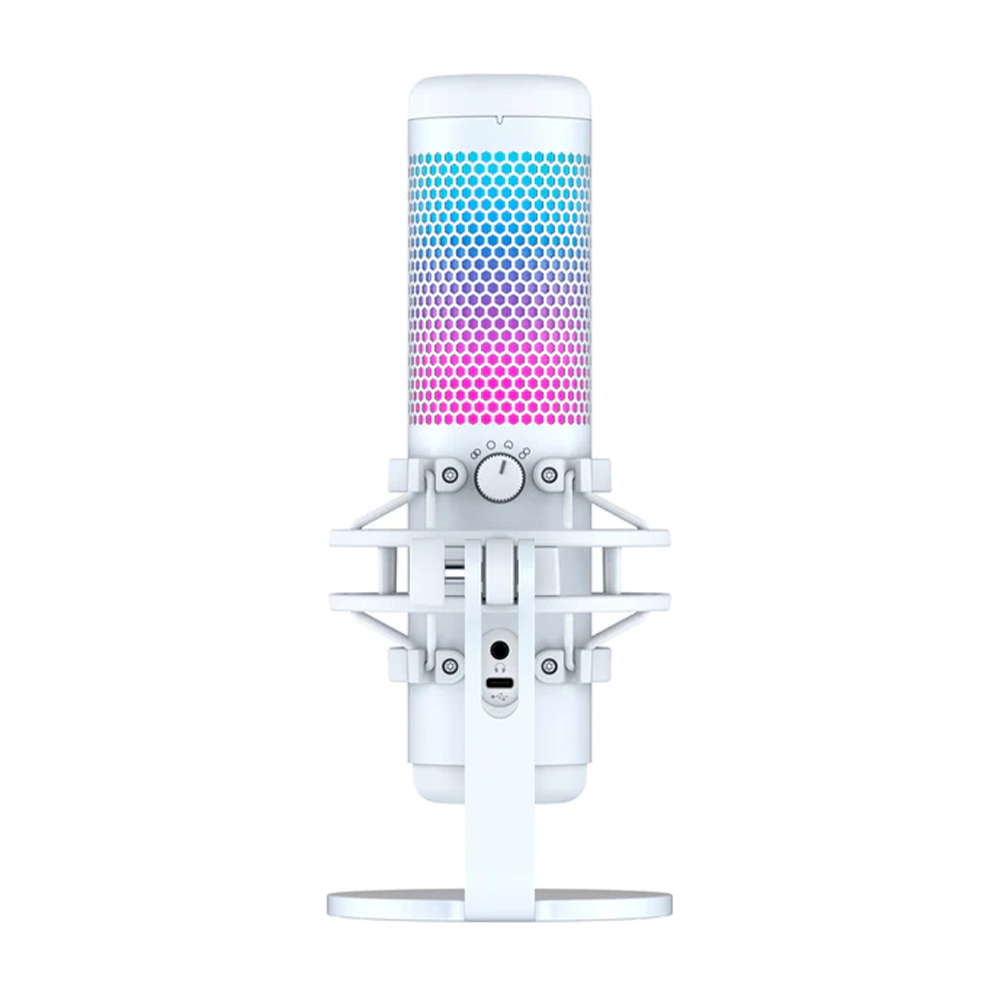 Micrófono de condensador HyperX QuadCast S Blanco, RGB, USB, PC, PS4, Mac, Montaje antivibración, Filtro Pop, Control de Ganancia, 519P0AA