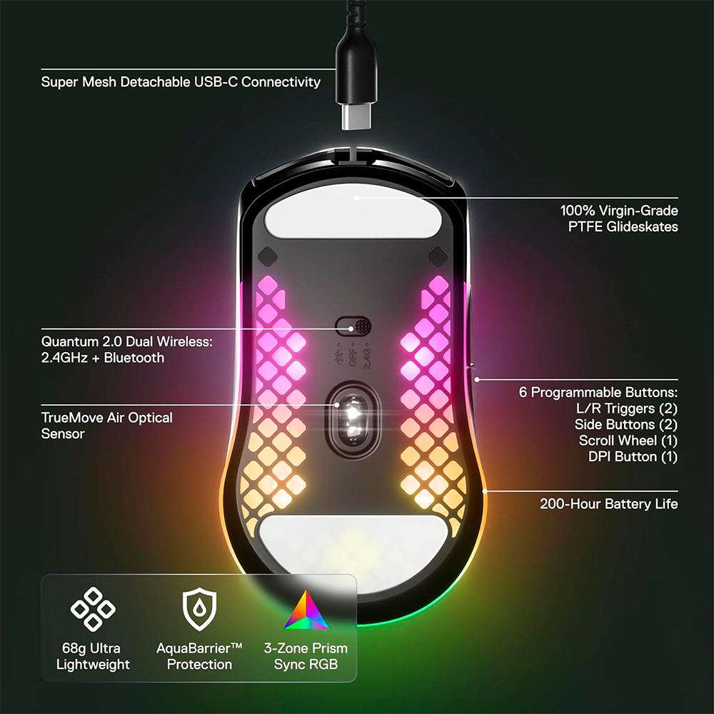 Home ACCESORIOS MOUSE Mouse Gamer SteelSeries Aerox 3 Wireless Onyx, Inalámbrico, Sensor SteelSeries TrueMove Core, Óptico, 62612/ SS%OFF, INCLUYE MOUSEPAD STEELSERIES DE REGALO, NAVSTEEL