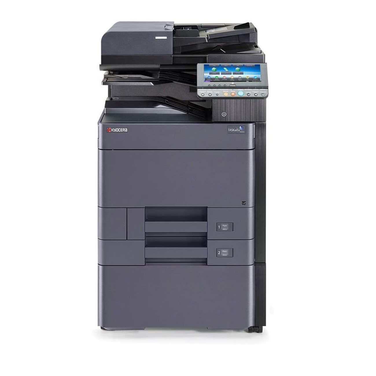 La facilidad de uso es clave, y la TASKalfa 308ci lo sabe. Su pantalla táctil a color de 7 pulgadas con un mecanismo de inclinación hace que la navegación y la configuración de trabajos sea muy intuitiva. Además, con opciones de memoria que van desde 1.5 GB hasta 128 GB SSD, el equipo puede manejar sin problemas incluso los trabajos de impresión más complejos y grandes.