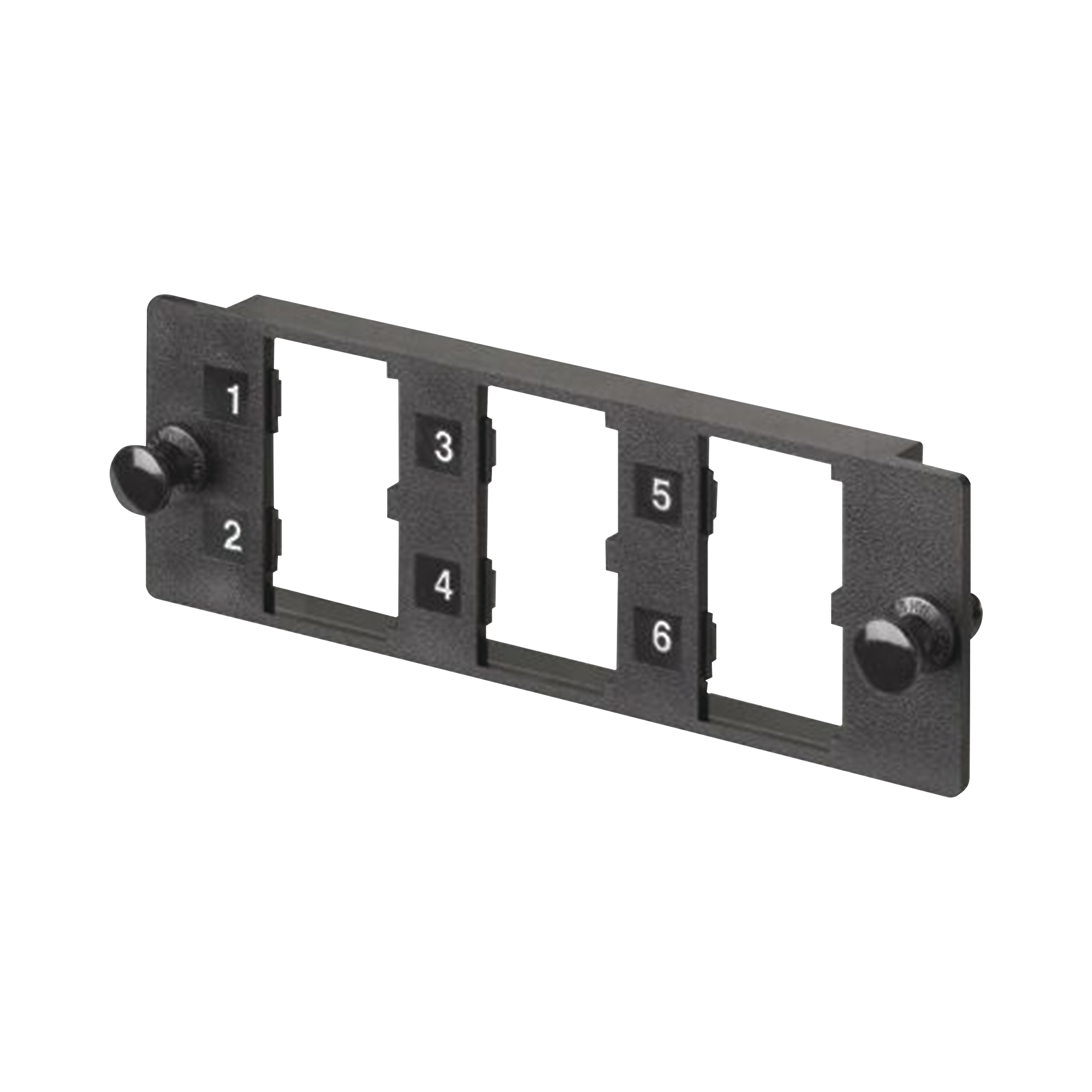 El panel modular multimedia es compatible todos los paneles Opticom. Cuenta con seis puertos para seis módulos Mini-Com® para aplicaciones UTP, fibra óptica y AV.