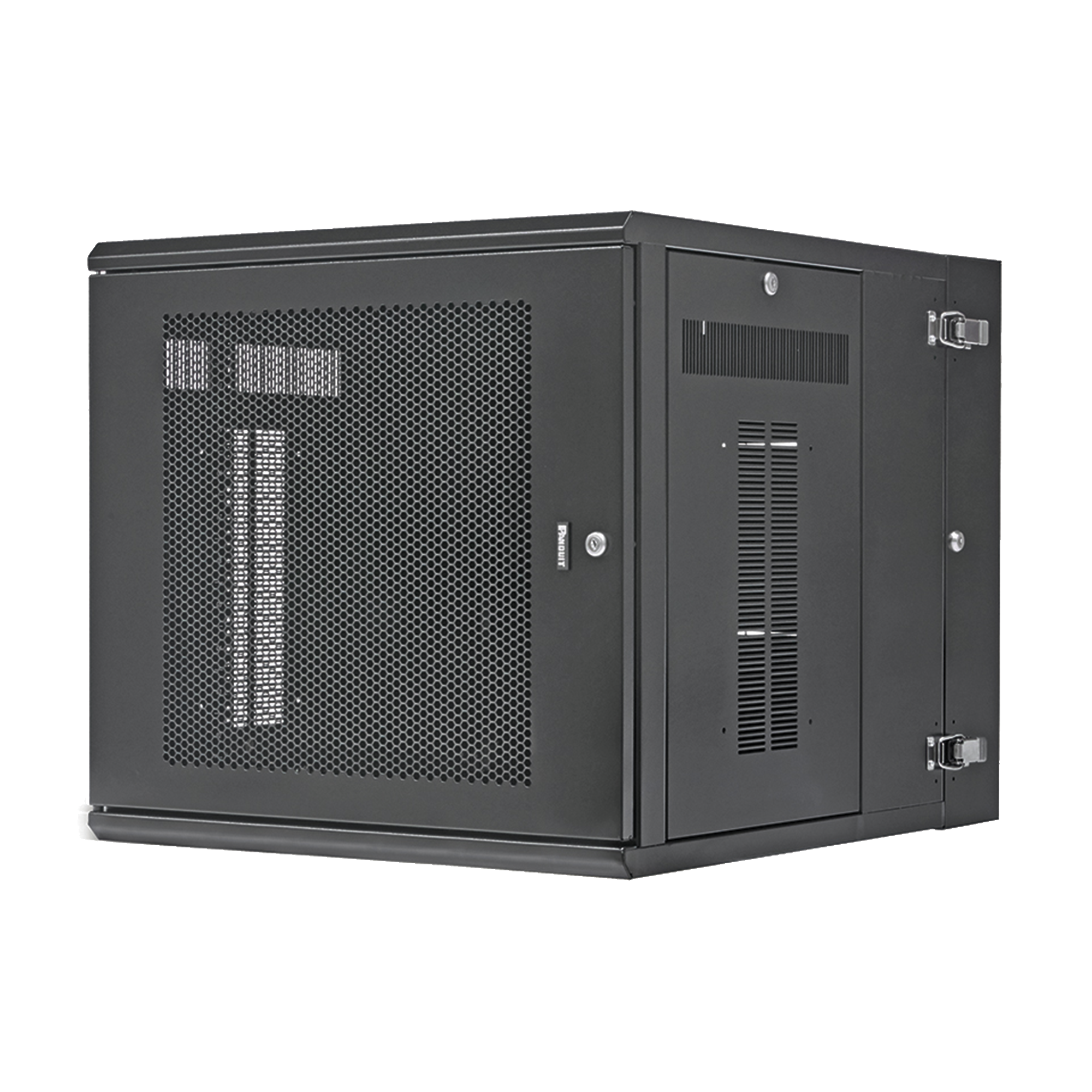 Gabinete de montaje en pared construido en acero, soporta 12 unidades de Rack para equipos de red activos o pasivos. Cuenta con paneles laterales totalmente desmontables y esta diseñado para permitir el control de clima adecuado para uso con diversos equipos de red, así como Switches de alimentación remota (PoE) y fuentes de alimentación ininterrumpida (UPS).