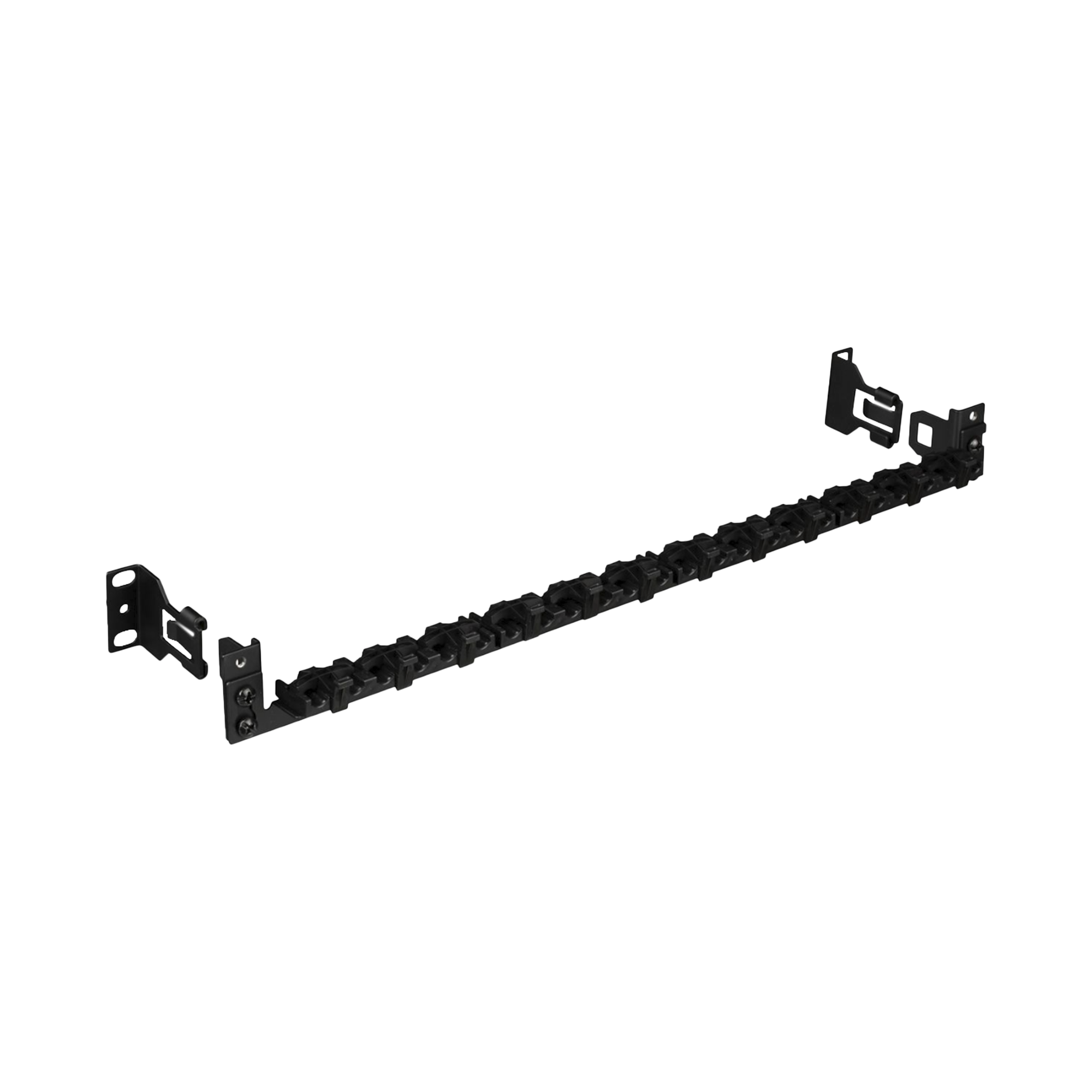 Las barras de protección contra tirones consiste en una barra de metal que se instala en la parte trasera de un rack estándar EIA de 19″ para soportar un mínimo de 24 cables que salen de la parte trasera de un panel de conexiones. Los cables se asegurarán con clips ajustables integrados o tiras de velcro. Los soportes de liberación rápida opcionales proporcionarán una manera fácil de quitar la barra de alivio de tensión sin el uso de herramientas.