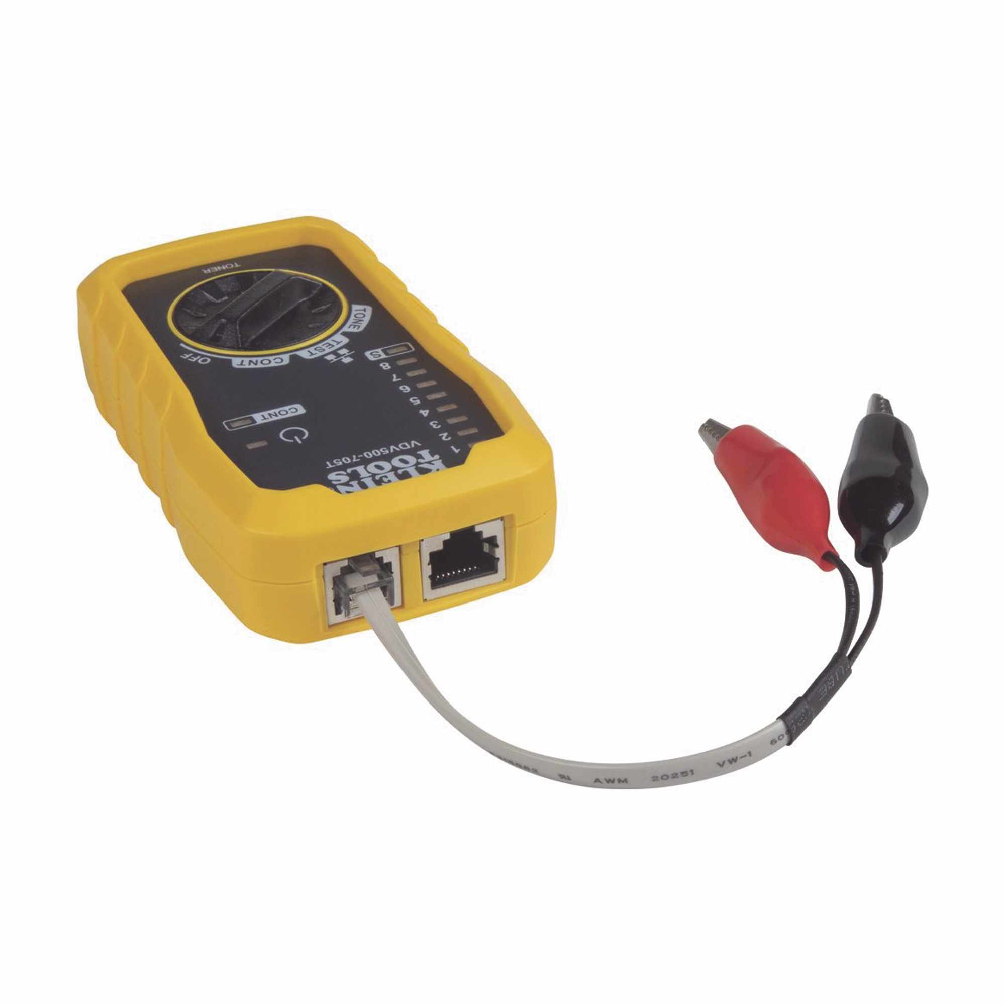 El kit de prueba y rastreo Tone & Probe ofrece una identificación de tono y rastreo simples de cables no energizados. El generador de tono fácil de utilizar rastrea cables cuando se usa junto con la sonda incluida. Las pinzas tipo cocodrilo incluyen cables sin terminación y un cable RJ45 a RJ45 para probar o generar tono en cables de datos. La sonda sensible es un rastreador de tono con una punta conductora duradera, no metálica, un altavoz con salida audible y conectores de auriculares para uso en ambientes ruidosos (auriculares no incluidos). La luz de trabajo de la sonda ilumina espacios oscuros. El generador de tono y la sonda realizan pruebas de mapeo de cables de clavija a clavija.
