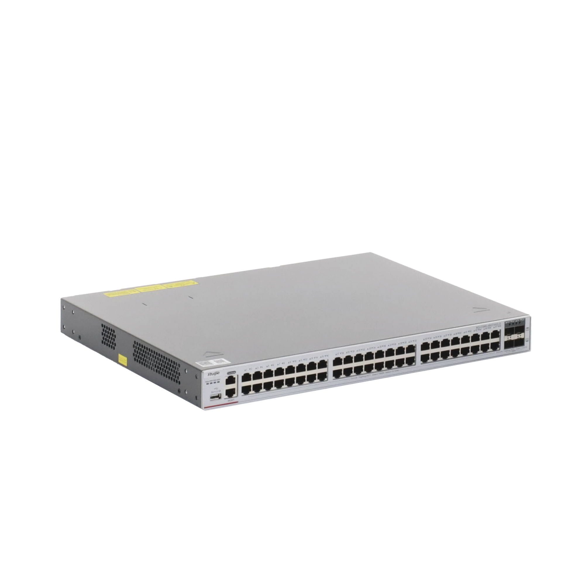 48 puertos eléctricos de 10/100/1000 Mbps con negociación automática, 4 puertos SFP+ 1G/10G y dos ranuras de alimentación modulares