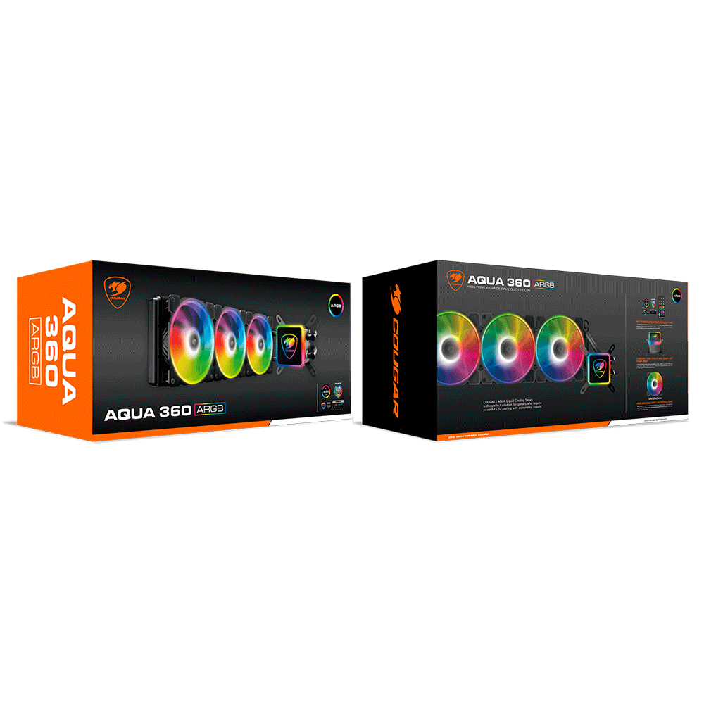 Sistema de Enfriamiento Liquido AIO Cougar Gaming Aqua 360 ARGB, 360mm, Intel y Amd (Listo para Ryzen e Intel 2066), CGR-AQUA ARGB 360